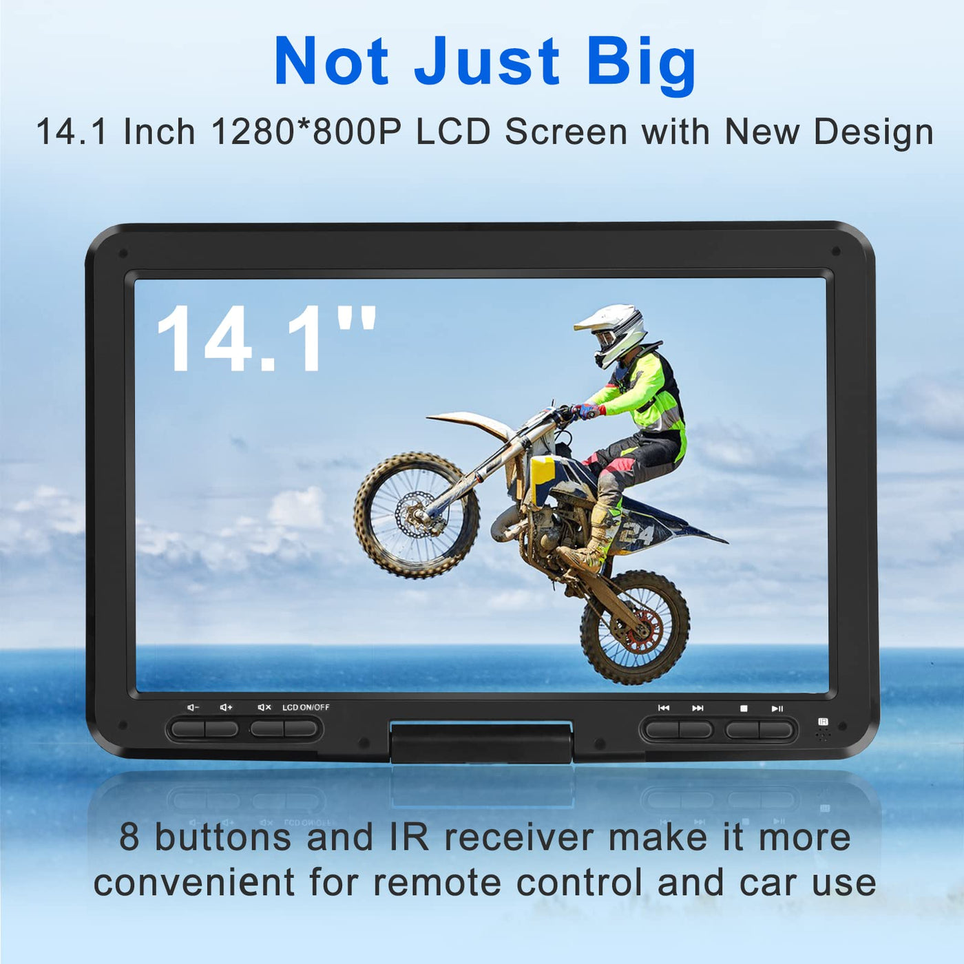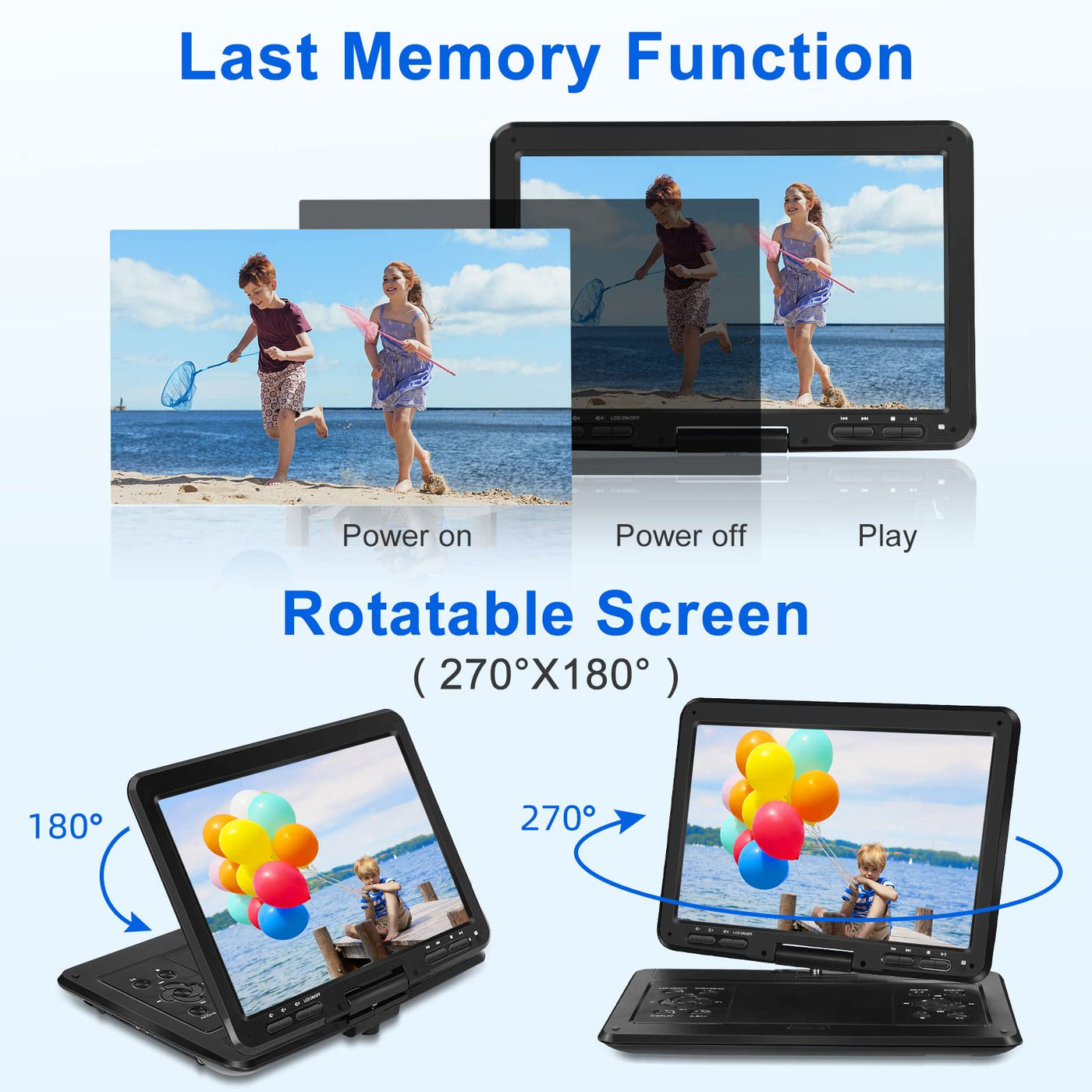 Yoohoo 16.9'' Portable Dvd Player With 14.1'' Large Hd Swivel Buttons Screen, 6 Hrs Battery Dvd Player Portable, Power Adapter,