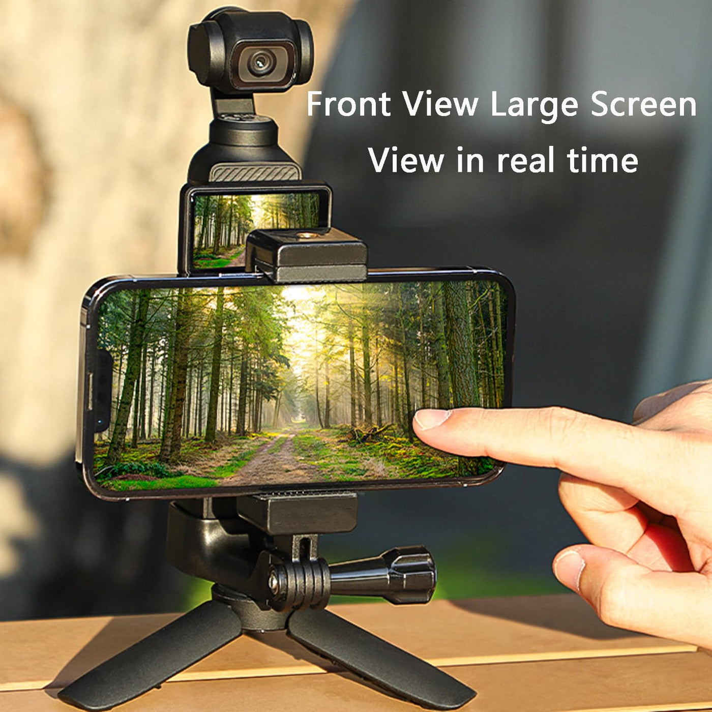 Features: 1. Front View Large Screen, Real-Time View. Front Facing Mobile Phone Stand, Keep Pocket 3 And Mobile Phone In The Same Vertical Line, View The Picture More Smoothly. 2. The Plane Is Placed Smoothly For Safe Photoing. 3. Bottom 1/4 Screw Hole. Can Be Used With Tripod And Extension Rod, Handheld Shooting Is More Convenient. 4. Multi-Function Phone Clip. The Mobile Phone Clip Can Be Expanded And Used Separately, And Can Be Used As A Cycling Mobile Phone Bracket, A Car Suction Cup Bracket, A Mobile Phone Desktop Bracket, Etc. Specifications: Front Phone Stand Model: For Osmo Pocket 3 Material: Plastic Net Weight: 62G Package: 1* Phone Holder For Osmo Pocket 3