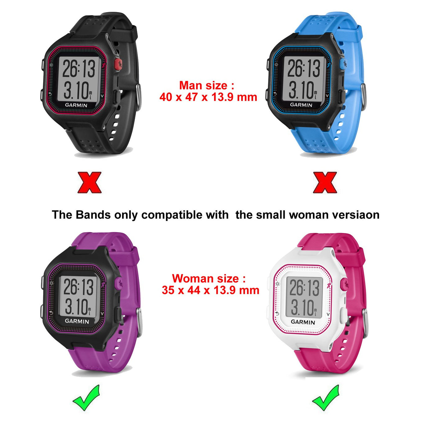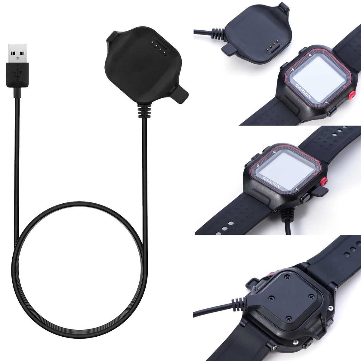 ?Why Choose Fitturn? ?Our Philosophy Is The Most User-Friendly Design, The Best Service, The Most Suitable Price, The Most Comfortable Experience. Just For You ?Compatible With: Garmin Forerunner 25 Gps Running Watch Small (Not Suitable For Other Models). ?Note: There Are Two Styles And Size, Please Check The Model Carefully Before Buying To Avoid Buying Errors. ?Details ?Length: 100Cm ?Color : Black ?Note: Please Do Not Charge More Than 2A, Will Greatly Reduce The Life Of Your Equipment. ?Feature: ?The Clip Is Relatively Compact And Ensures A Perfect Snap-In And Fast Charging Of The Watch. ?Compact And Portable Design, Ideal For The Travelers And Business User ?Or Use It At Home And In The Office, It Will Be Your Best Choice. ?Package Includes: 1 X Charger Dock; 1 X Usb Cable (Not Includes The Watch) ?Best Gift For Yourself , Your Family And Friends!30 Days Warranty: Free Replacement Or Full Refund If You Have Any Issues ?Fitturn Provides You With The Best Service, Write To Us With Any Questions, You Will Get The Most Satisfactory Solution, Please Rest Assured To Buy:)