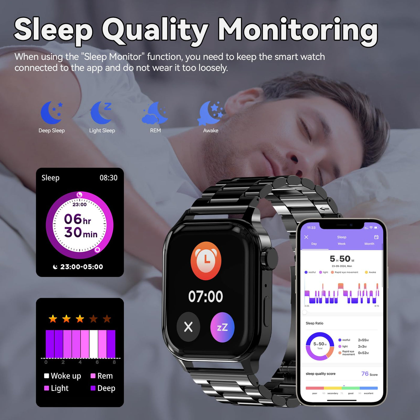 Smart Watch For Men With Answer/Make Calls, 1.85 Hd Display Fitness Tracker Watch With Waterproof 100+Sports Modes Health Monitor Sleep Monitor For Ios Android