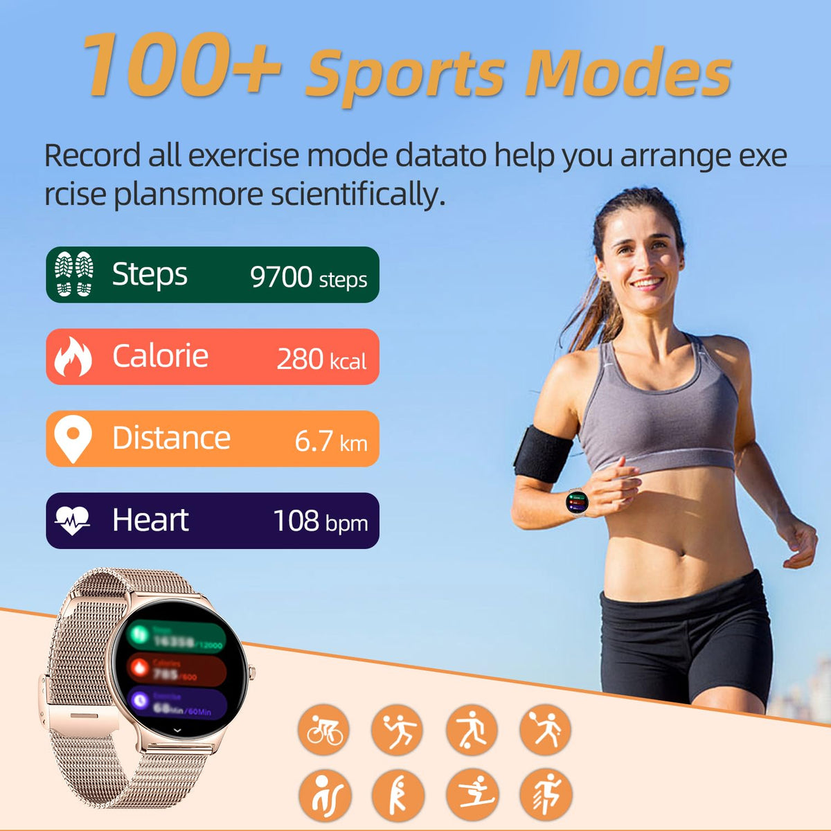 The Smartwatch Features A Lightweight All Metal Design, Paired With Stylish Color Options And An Exquisite Metal Strap, Effortlessly Enhancing Your Appearance For Professional Occasions Or Casual Outings. The Included Silicone Strap Allows You To Seamlessly Switch Between Travel, Exercise, Or Everyday Wear, Ensuring Your Style Remains Diverse While Showcasing Your Unique Talents.