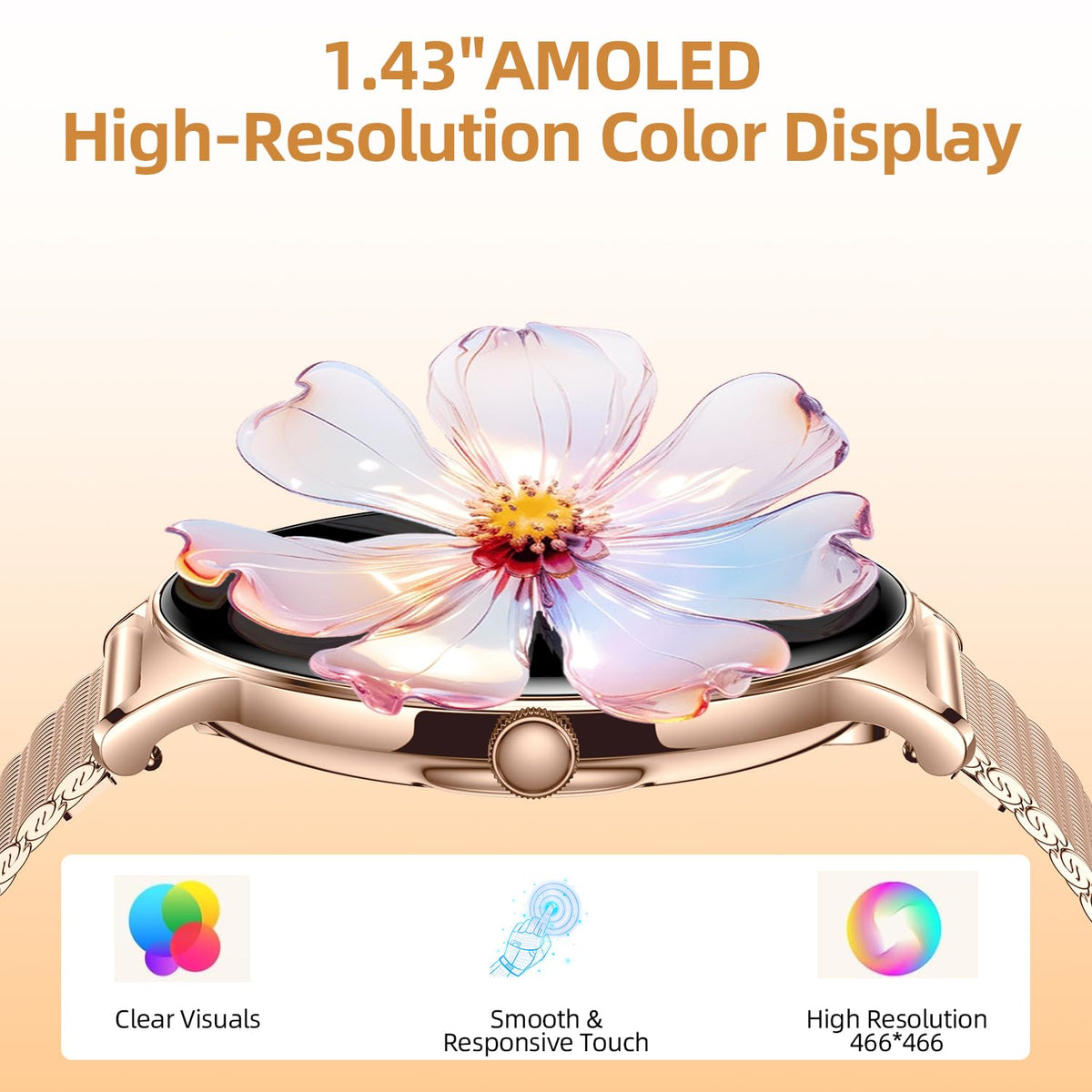 J-Cd Smart Watch For Women, 1.43 Inch Screen, Round Fitness Watches, Support Make&Receive Call/Bluetooth/Sleep Tracker, Ip68 Wat