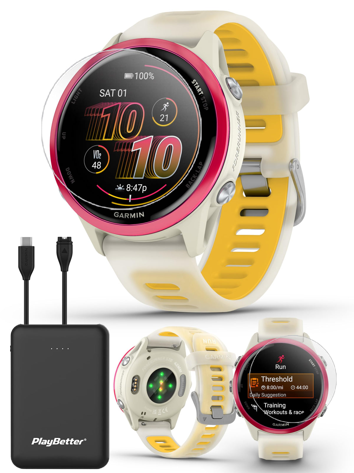 Playbetter Garmin Forerunner 570 (42 Mm, Raspberry/Translucent Bone/Mango) Running Gps Smartwatch - Amoled Display, Training & R