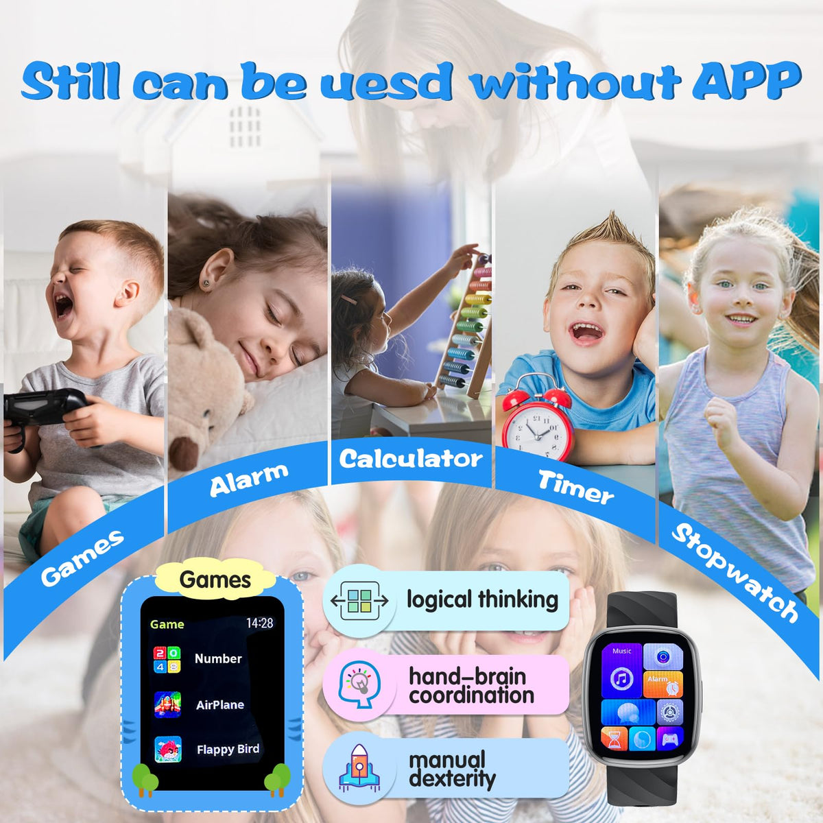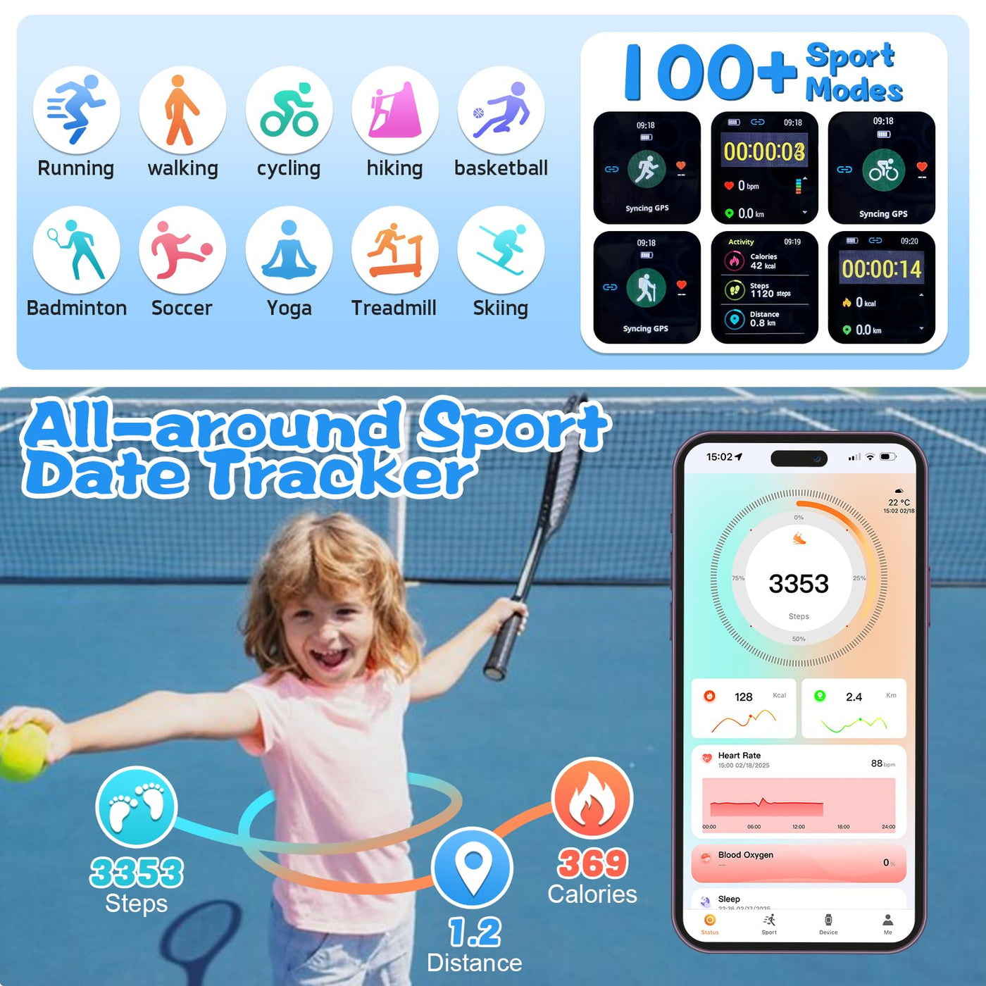 Smart Watch For Kids Fitness Activity Tracker For Boys Girls, Waterproof, Puzzle Games, Alarm Music, Sport Mode, Heart Rate, Sleep, Pedometer, Children Smartwatch Birthday Gift For Teens