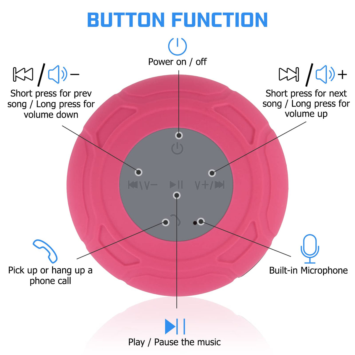 Portable Bluetooth Shower Speaker - Don'T Let The Water Stop You From Enjoying Your Favorite Music. Allow You To Use It At Any Where Or Any Time You Like (In Bathroom, Kitchen,Beach, Swimming Pool, Wash Room, On Boat.) | Unique Suction Cup Design - Easy To Attach And Remove, The Suction Cup Could Sucked On Any Flat Surface Including Desk, Wall, Window, Back Side Of Phone Or Tablet. | Built-In Microphone - Enjoying Hand-Free Call, Automatically Pairs Your Device With The Speaker When It Is In Range Of The Speaker. | Wireless Bluetooth - Compatible With Smartphones And Any Bluetooth-Enabled Device.Perfect Sound Experience, Easy Button Operatiom:Switching Music, Volume Control, Call Answering. | Wireless Waterproof Shower Speaker, Beautifully Packaged, Ideal As A Gift For Kids, Lovers, Seniors, Etc.If For Any Reason You'Re Not Happy With Your Shower Speaker, Please Contact Us,We'Ll Either Send You A Replacement Or Fully Refund .