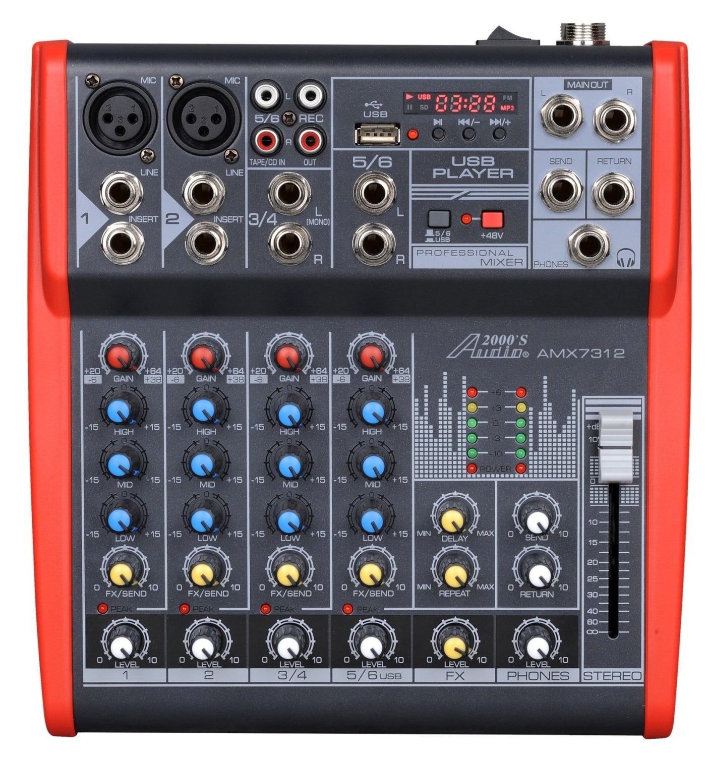 Audio2000S Amx7312 Professional Six-Channel Audio Mixer With Usb And Dsp Processor