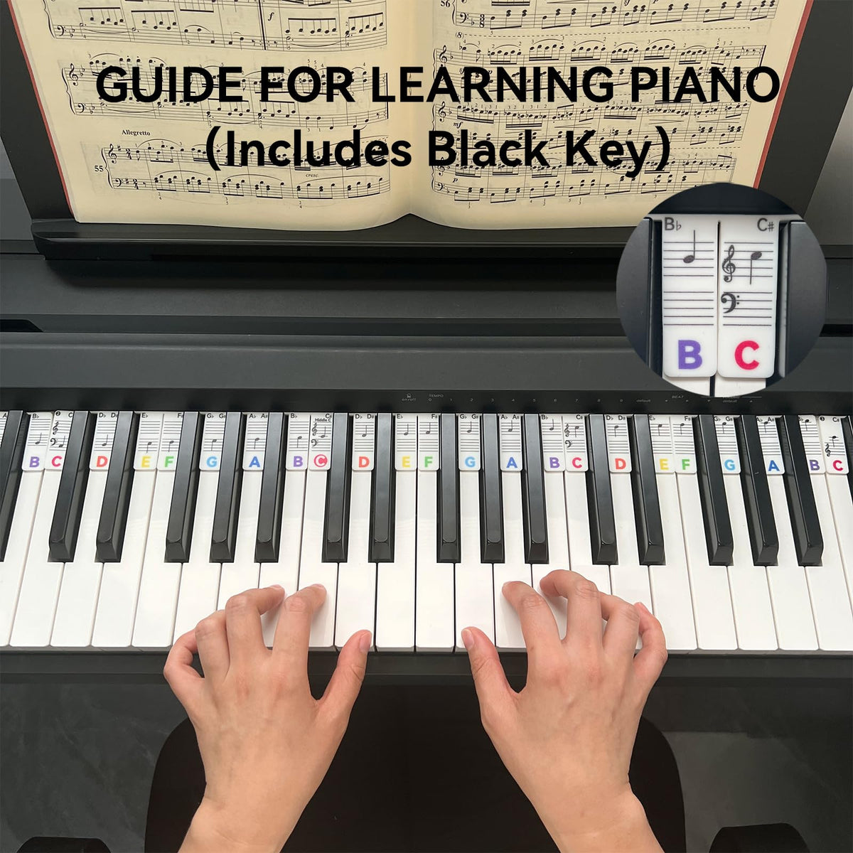 Beatbit Piano Note Strips With Black Keys, Fit 88/76 Key Piano Keyboard Learning, Removable Piano Key Stickers