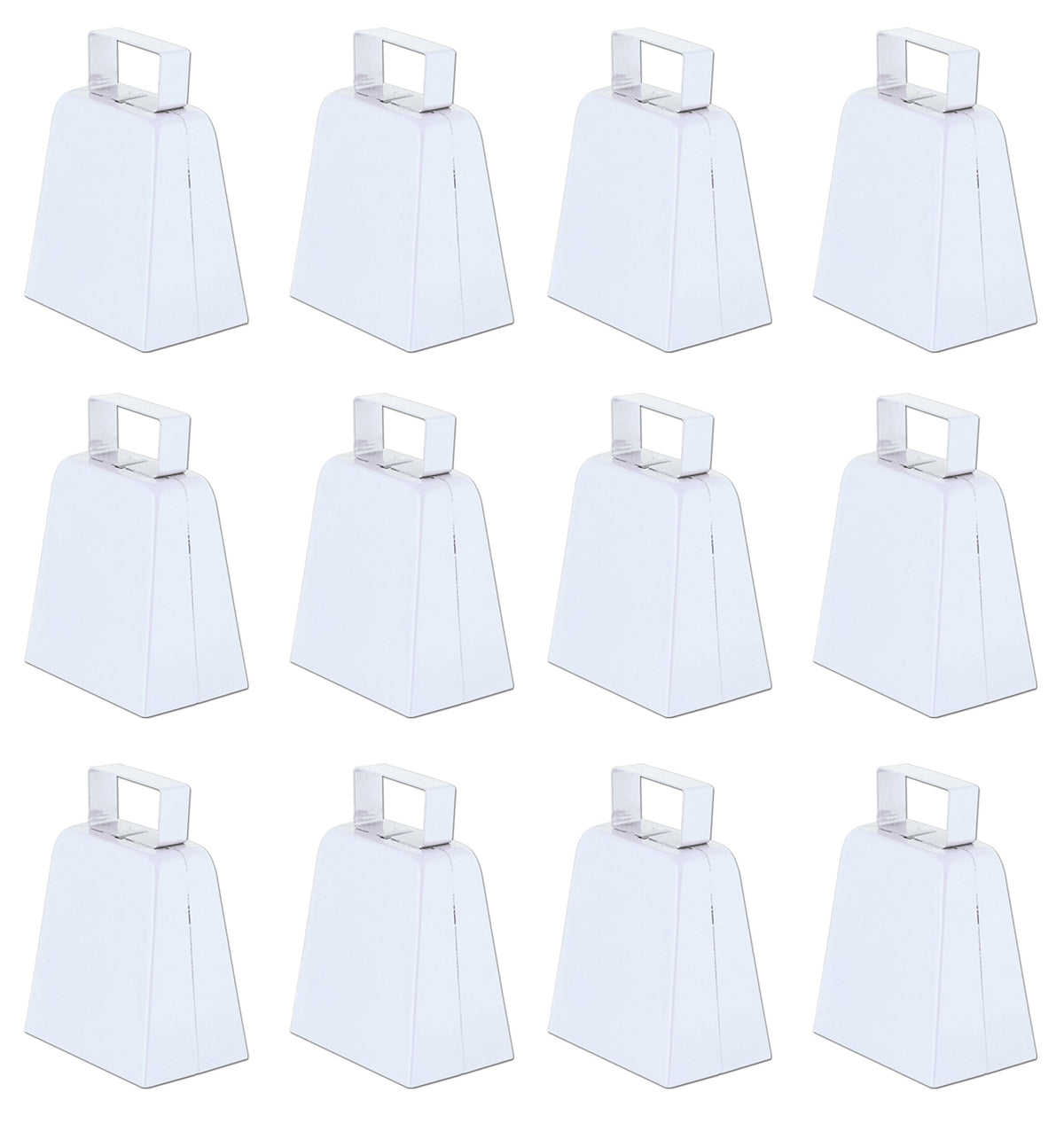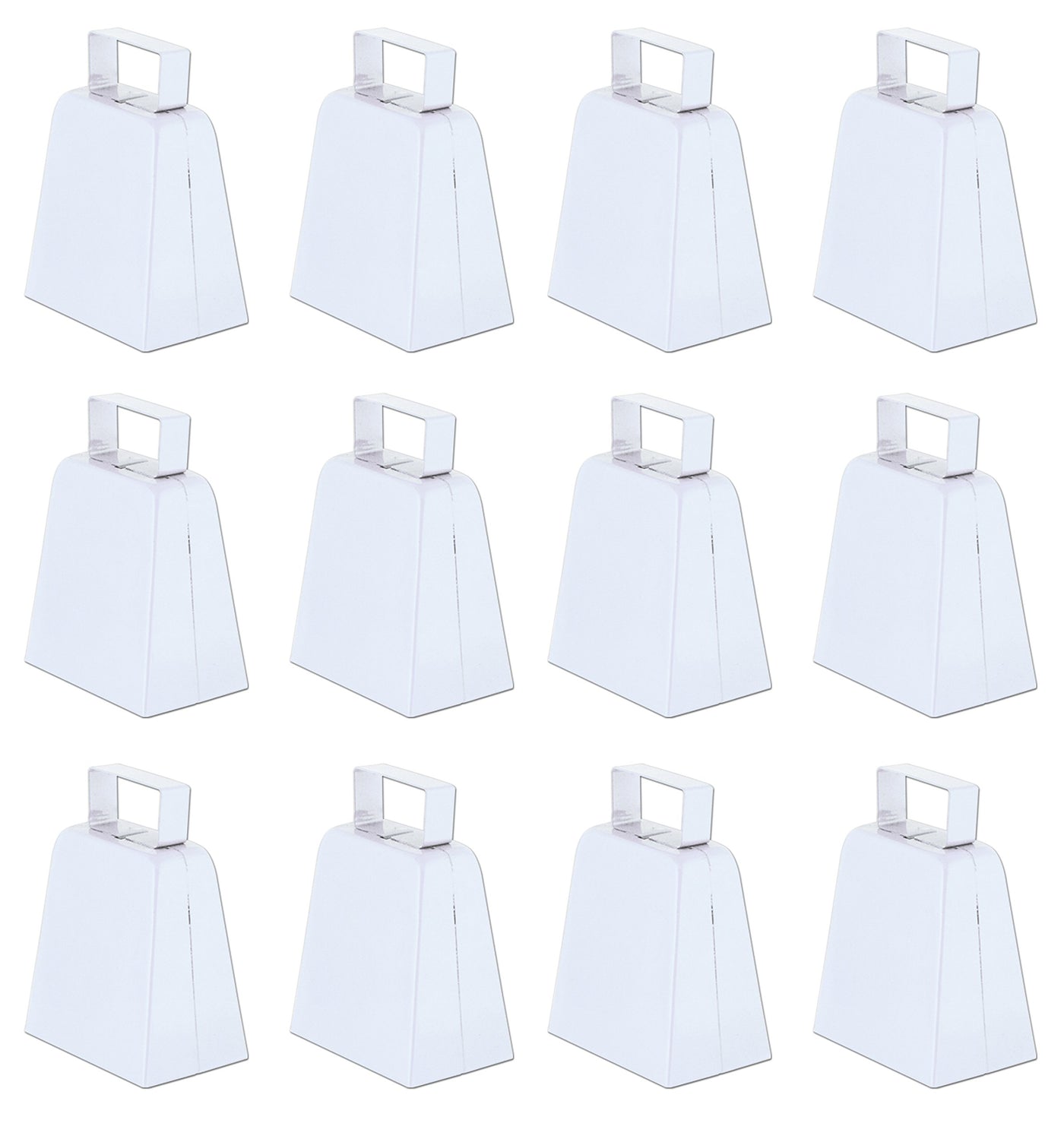 Beistle White Cowbells. Includes 12 Cowbells Per Package. The White Cowbells Are Made Of Metal And Measure 4 Inches Tall. Use The Cowbells To Cheer On Your Favorite Sports Team Or Hand Them Out At A Sports Party For All The Guests To Use! Great For Showing Team Pride And School Spirit!