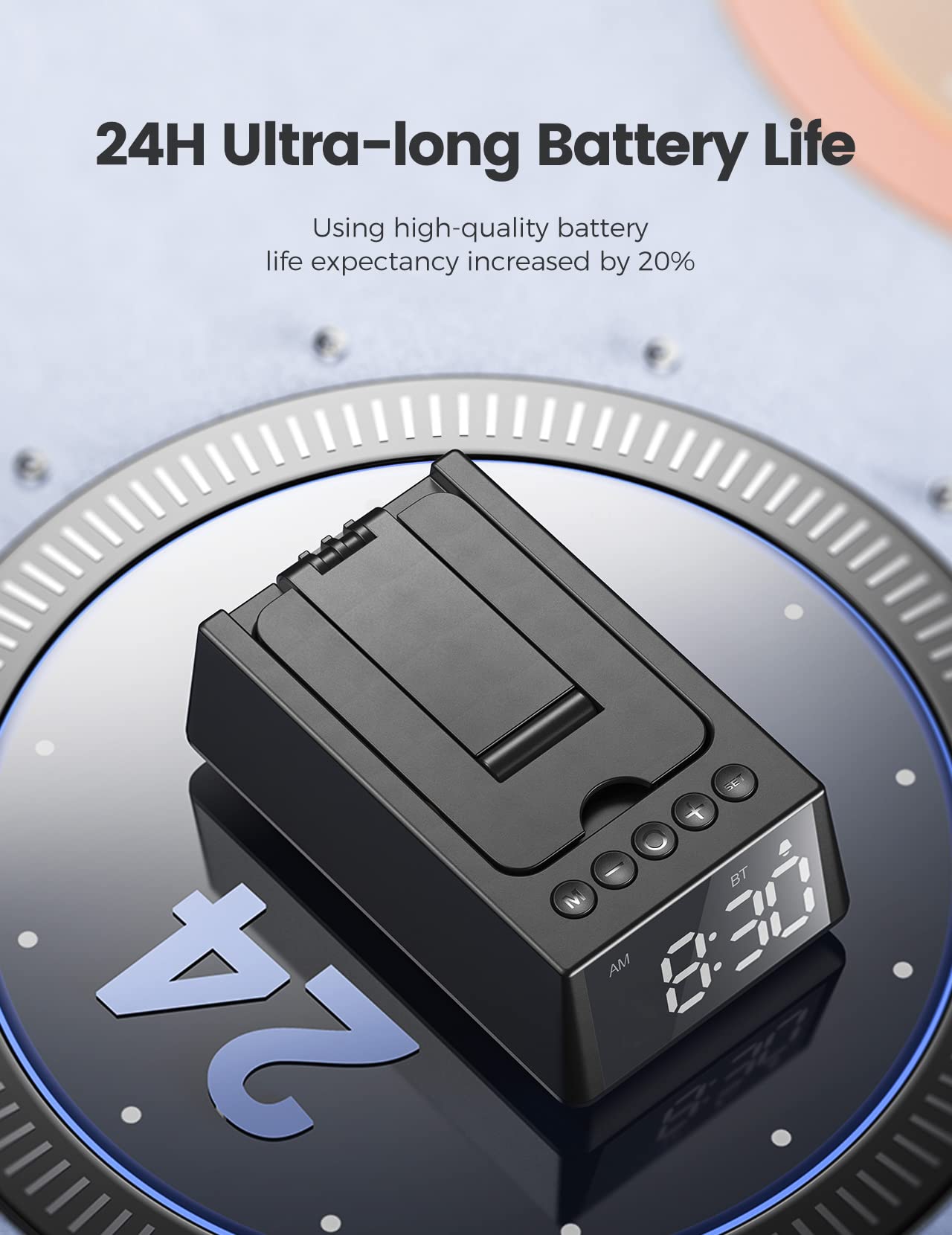 Q: How does the alarm clock function work on this device?A: The CHIFENCHY Bluetooth speaker features a built-in alarm clock function that allows you to set the time easily. Even if the screen is turned off, the time remains displayed. It also includes a snooze feature, granting you an extra 5 minutes of sleep by pressing any button except the 'SET' button during the alarm.