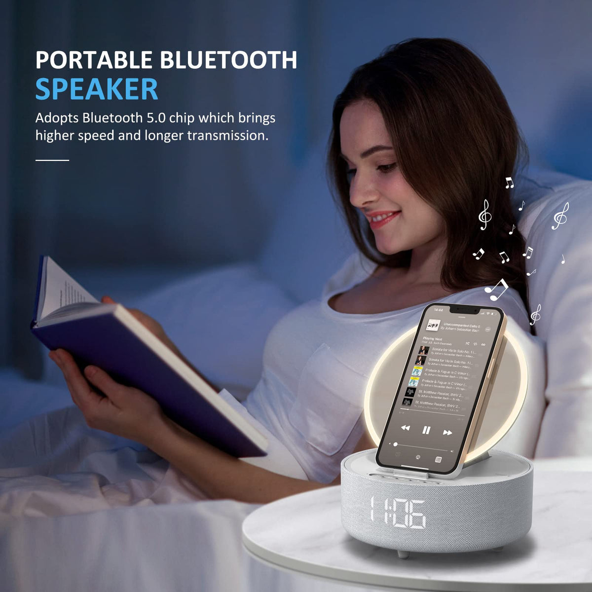 ?Perfect Music Gifts?Unwrap The Magic Of A Multifunctional Wonder! This Gift Combines A Bluetooth Speaker, Digital Alarm Clock, Vanity Mirror, Wireless Charger, Night Light, And Phone Holder In One. Music Gifts For Girls, Women, And Your Loved Ones.