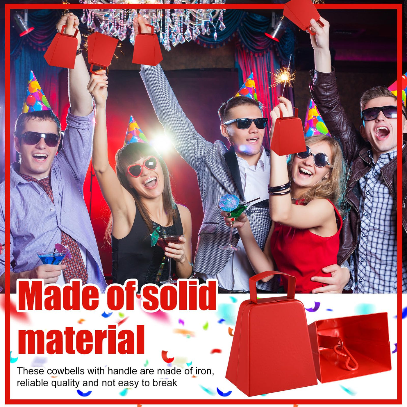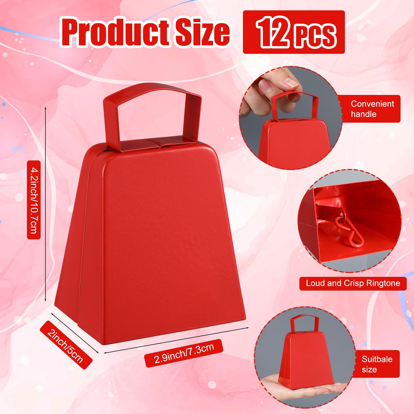 Features: Convenient And Practical: These Metal Cowbells Add Energy To Sporting Events And Elevate The Cheering Atmosphere. Not Only Attracting Attention, But Also Getting The Crowd Excited, Suitable For Anyone Looking To Enhance The Cheering Experience At A Sporting Event Or Celebration. Additionally, It Serves As A Good Percussion Instrument, Allowing You To Create Lively, Rhythmic Music. Ideal Gift: These Cheering Bells Are The Suitable Christmas, Birthday Gift For Friends, Children, Elderly Parents. It Has A Flat Surface, And You Can Make Your Own Unique Cow Bell By Decorating Them With Paints, Markers Or Stickers. Specifications: Material: Iron Color: Red Size: Each Measuring About 10.8 X 7.4 X 5.4 Cm/ 4.2 X 2.9 X 2 Inches Package Includes: 12 X Cowbells Notes: Manual Measurement, Please Allow Slight Errors On Size. The Color May Exist A Slight Difference Due To Different Screen Displays.