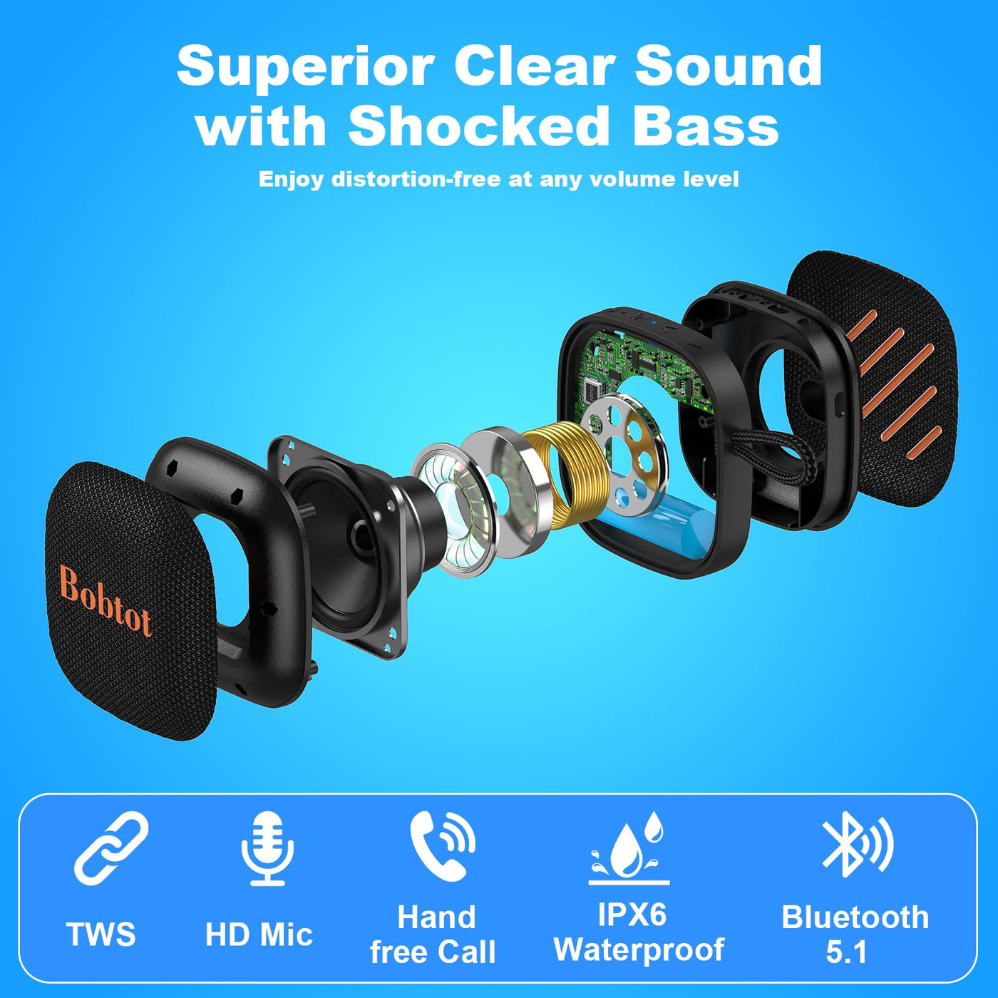 Bobtot Portable Bluetooth Speakers Wireless Speaker Waterproof Mini Shower Speaker With 16 Hours Playtime, Loud Stereo Sound,