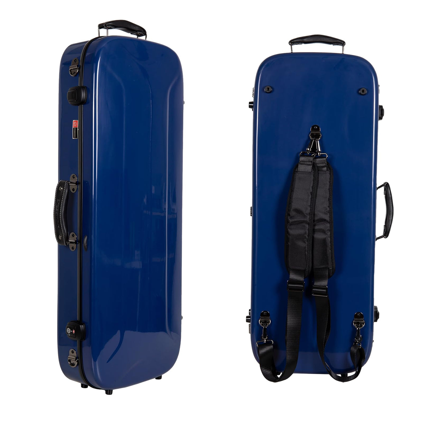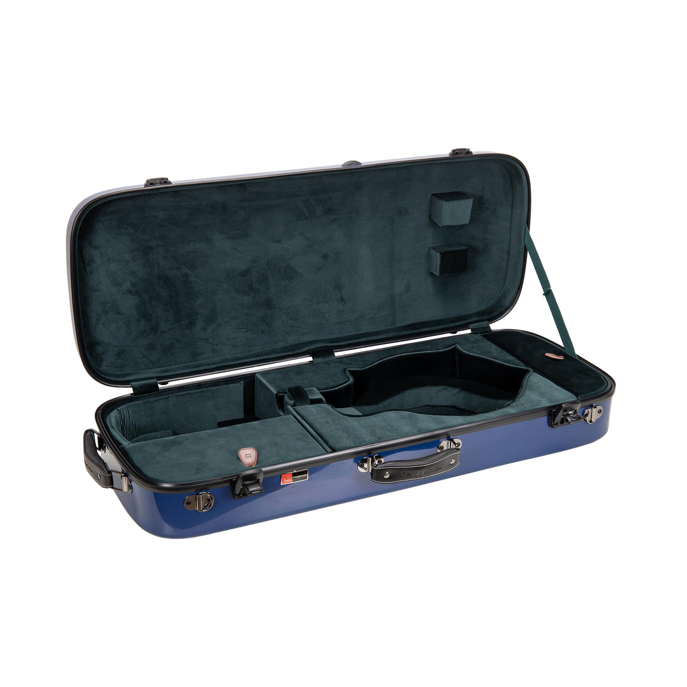 Crossrock Fiberglass Mandolin Case - Oblong For F-Style (Fits Gibson F5) | Navy Blue Gloss Finish, Forest Green Velvet, Tsa Lock