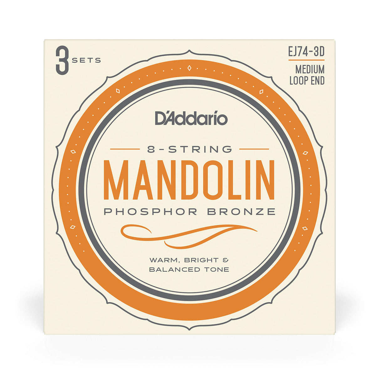 Daddario Mandolin Strings, Phosphor Bronze, Ej74-3D, Medium Gauge 11-40, 8-String Set, Pack Of 3