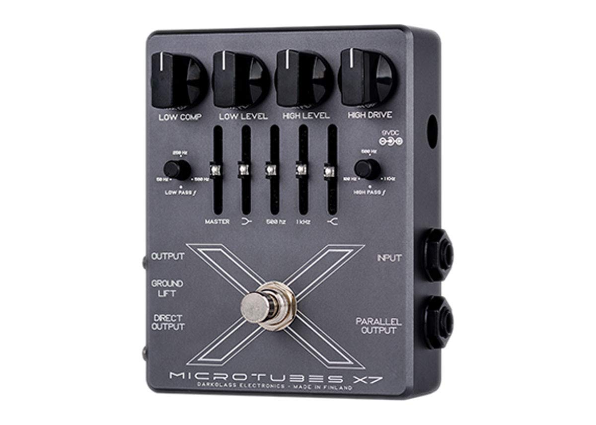 Versatile Bass Preamp Pedal For Stage Or Studio The Darkglass Microtubes X7 Bass Preamp Pedal Nails The Recipe For Powerful Distorted Bass That Maintains Low-End Impact. The Key To Punchy Distorted Bass Is Allowing Your Mids And Highs To Provide The Harmonic Drive, While Leaving Your Low Fundamentals Firm And Undistorted. The Microtubes X7 Pedal Achieves This By Splitting Your Signal To Two Variable Filters Before The Gain Stage, So You Can Shape Your Own Unique Drive Tone With Just The Right Combination Of Boom And Bite. Complete With A 4-Band Graphic Eq For Perfecting Your Midrange Character, The Darkglass Microtube X7 Bass Preamp Pedal Delivers Powerful, Tight, Defined Tones With Any Bass.Shape Your Tone With Two Variable Filters Before Driving Your Tone, The Darkglass Microtubes X7 Bass Preamp Splits Your Signal In Two And Filters Each. A Variable Lowpass Filter Lets You Choose How Much Of Your Signal Remains