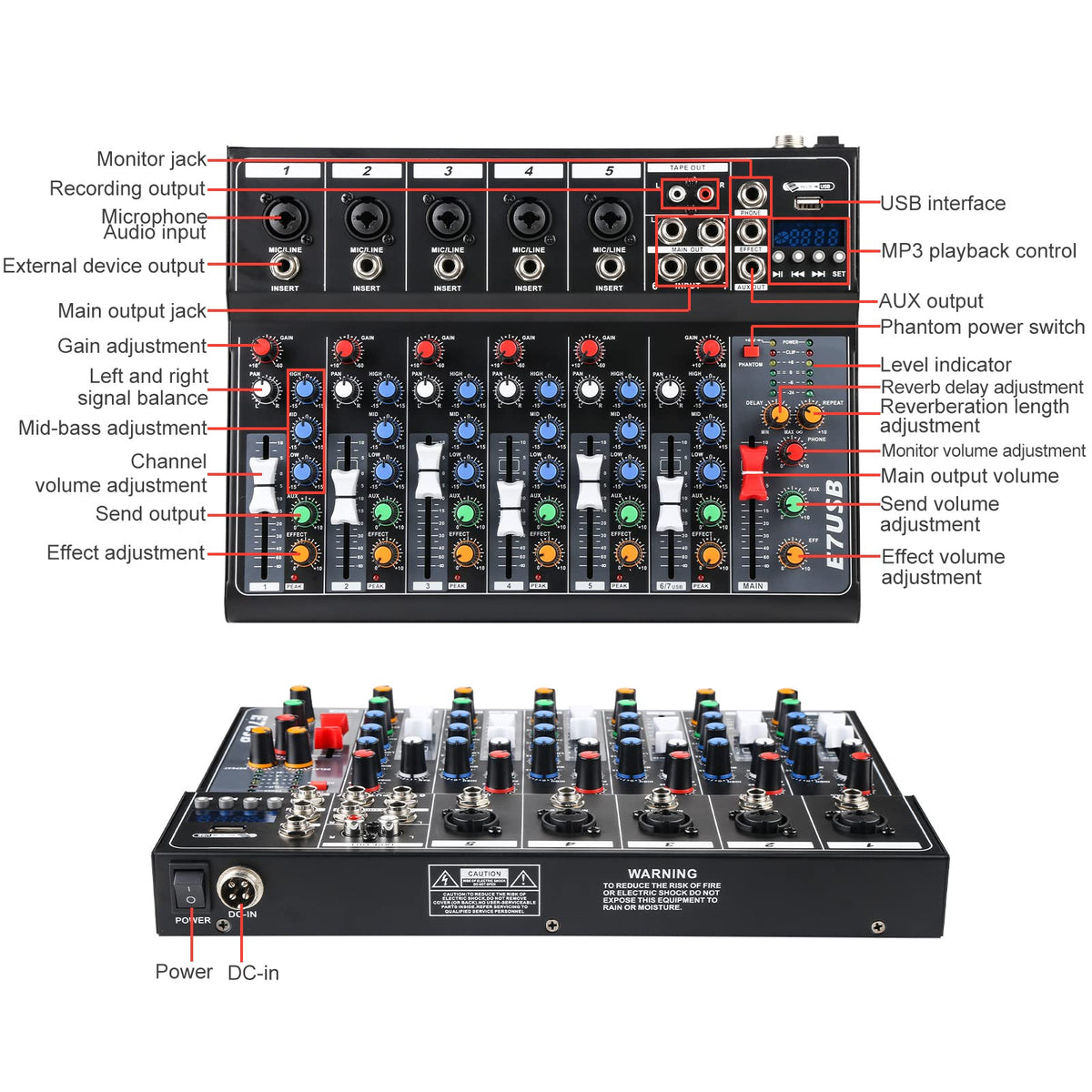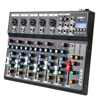 Dj Mixers 7 Channel Audio Mixer Sound Board With Bluetooth, Usb Audio Interface With 48V Phantom Power Sounds Mixer Board With F
