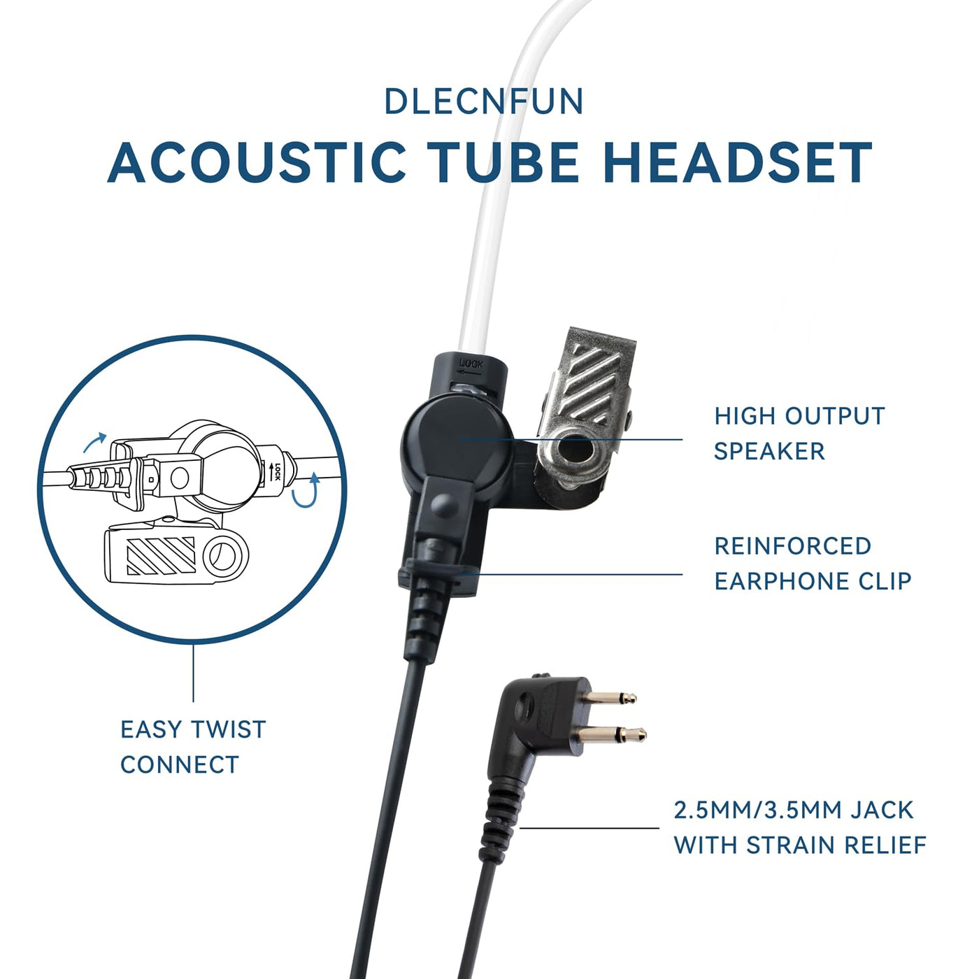 Dlecnfun Earpieces For Walkie Talkies With Mic 2 Pin 2.5Mm+3.5Mm Acoustic Tube Headset And Ppt Compatible With Motorola Two Way