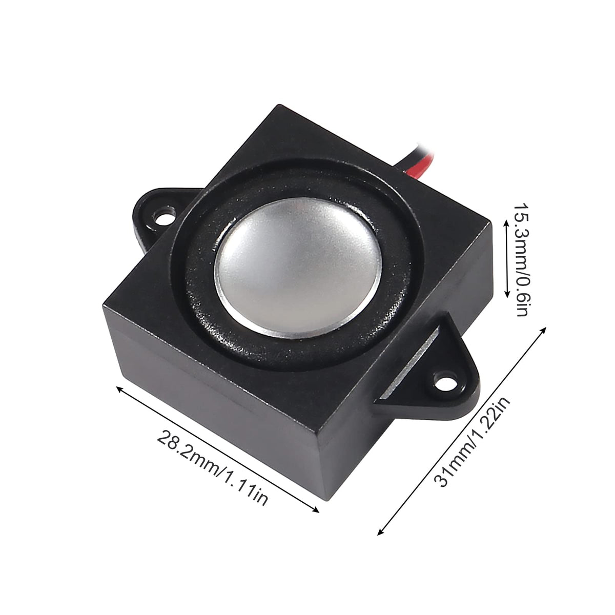 Q: What are the dimensions of the Dweii Mini Speaker?A: The Dweii Mini Speaker measures 44mm in length, 28mm in width, and 15mm in thickness, making it compact and suitable for various small electronic projects.