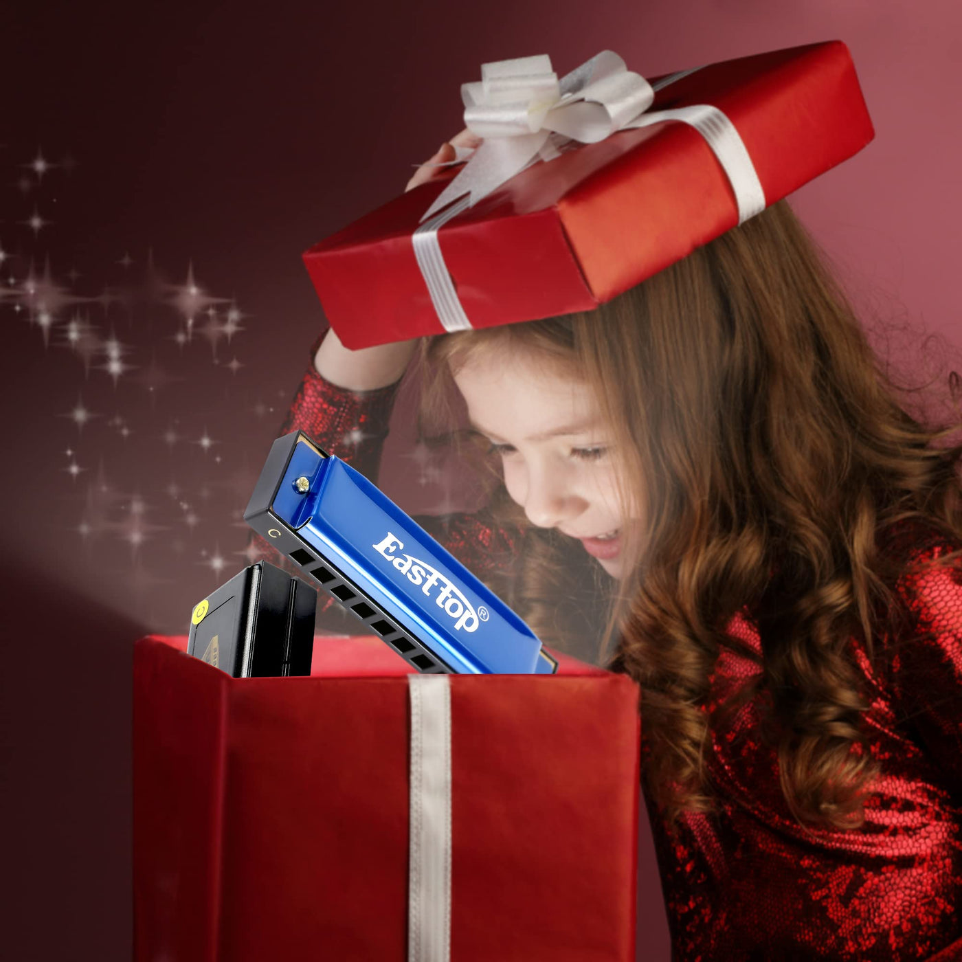 East Top Junior Harmonica Is Suitable For Beginner Practice With Blues, Folk, Rock, Country, Jazz Etc. This Junior Blues Harmonica Has Exquisite Workmanship, Beautiful Appearance, Accurate Tone And Responsive. Rich Sound, Responsive, Airtightness - Precision-Made Plastic Comb With Brass Reed 0.8Mm Thickness Reed Plate Is Easier To Get The Higher Pitch, Rich Sound And Timbre. Pocket Size And Easy To Bring-(4.01X 1.06X 0.74)''/ (103X 28 X 21)Mm(L X W X H), You Can Put It Into Your Pocket, It Can Be Played Everywhere, Such As Party, School, Office And Trip Etc. Beautiful Packaging- The Package Is Exquisitely Small And Can Be Used As A Birthday Present, A Gift For Further Study, A Holiday Souvenir Or A Business Meeting Gift And Wedding Anniversary Etc. Package Includes 1X Harmonica (Key Of C); 1X Instruction And 1X Cleaning Cloth. We Are The Harmonica Manufacturer Of The East Top Brand.Backed Up With East Top 30 Days Unconditional Money Back. You Can Rest Assured To Buy Our Products.