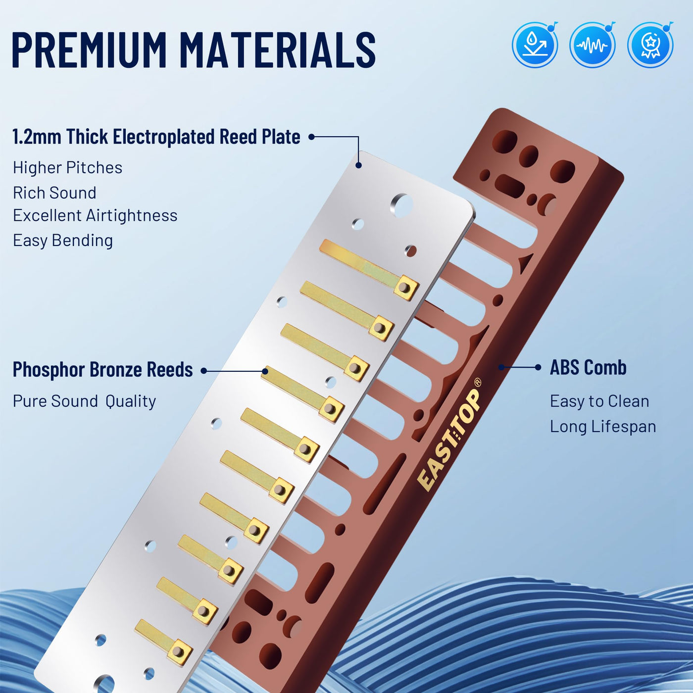 East Top Harmonica C, Updated Diatonic Blues Deluxe Harmonica C Key 10 Holes 20 Tones Professional Blues Harp Diatonic Mouth Org