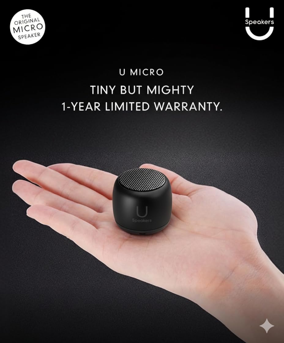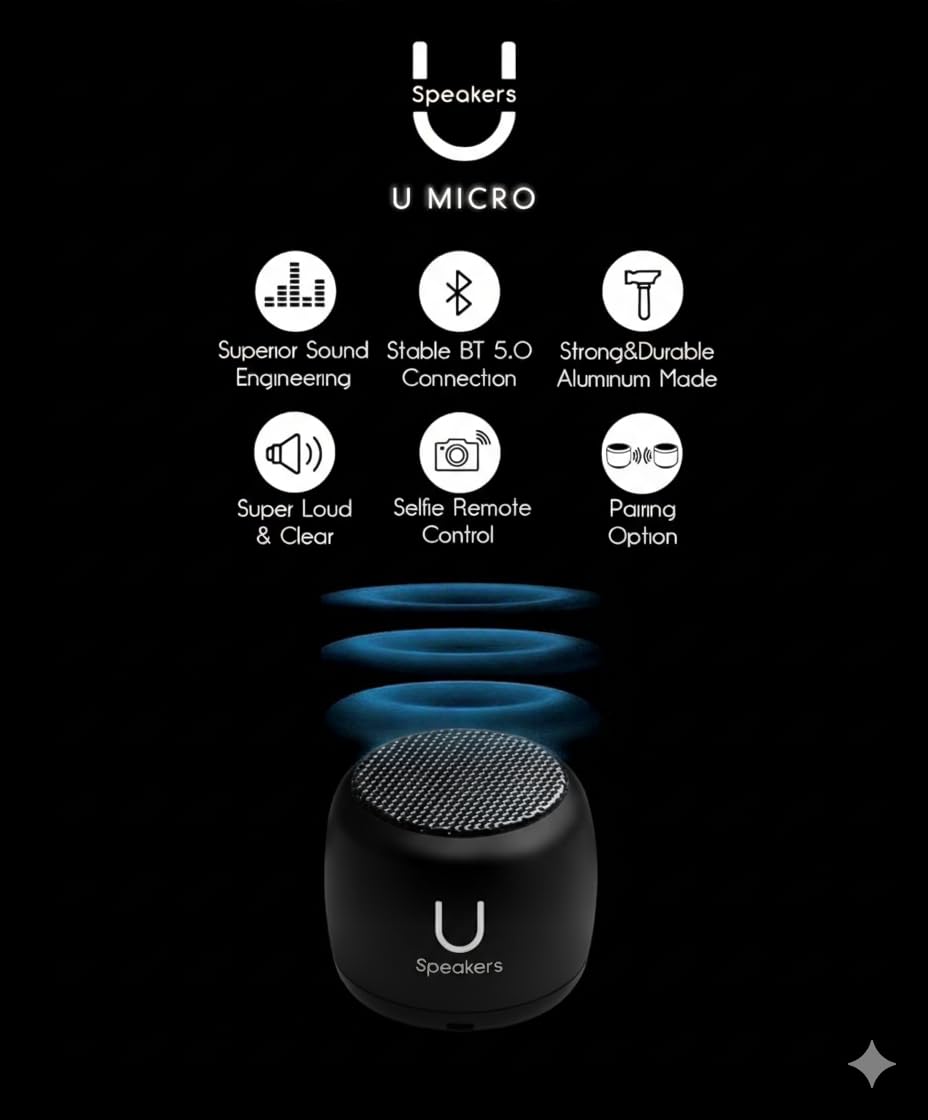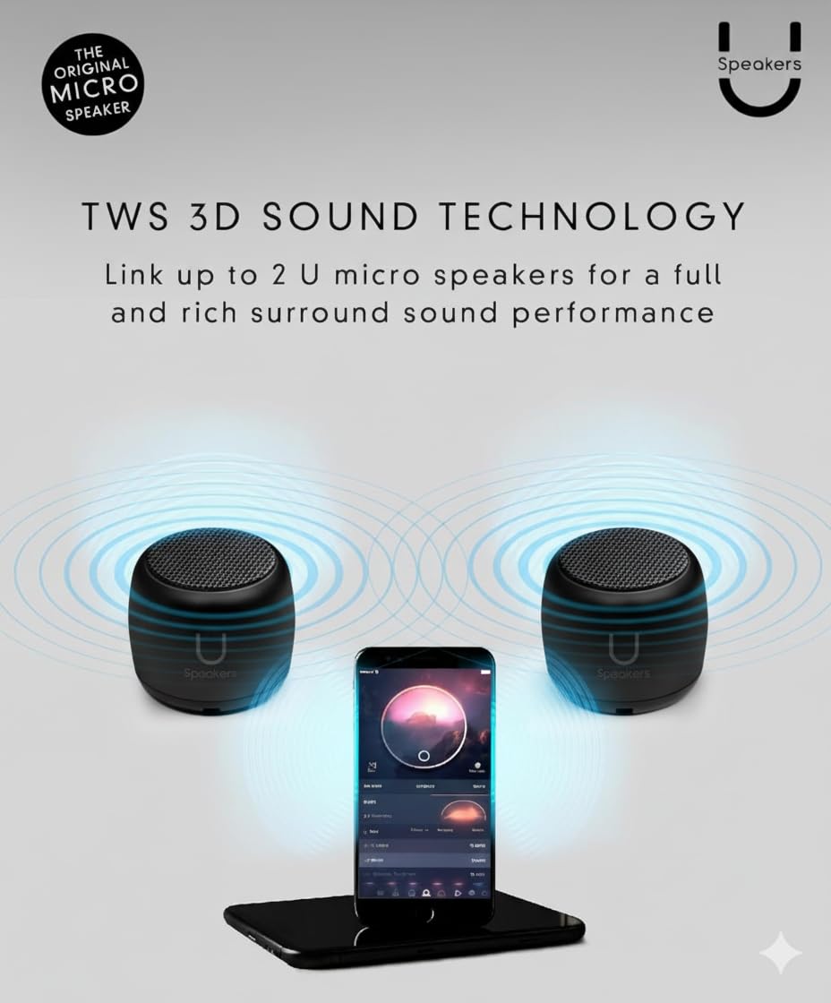 Fashionit U Micro - Small Bluetooth Speaker | Coin-Sized Speakers Bluetooth Wireless With Built-In Mic & Remote Shutter | Portab