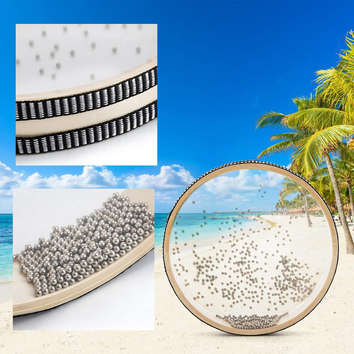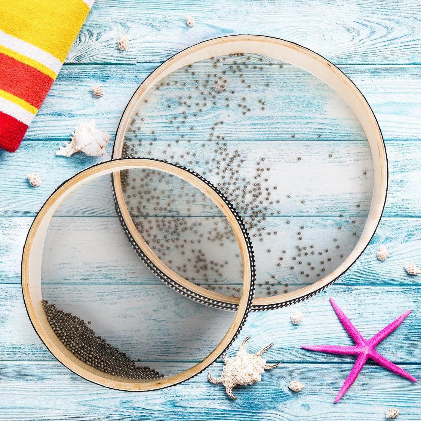 Fasmov 4 Pack Wave Bead Ocean Drum, Sea Sound Drum With Hardwood Shell Ocean Sound Drum Musical Instrument Percussion For Home S