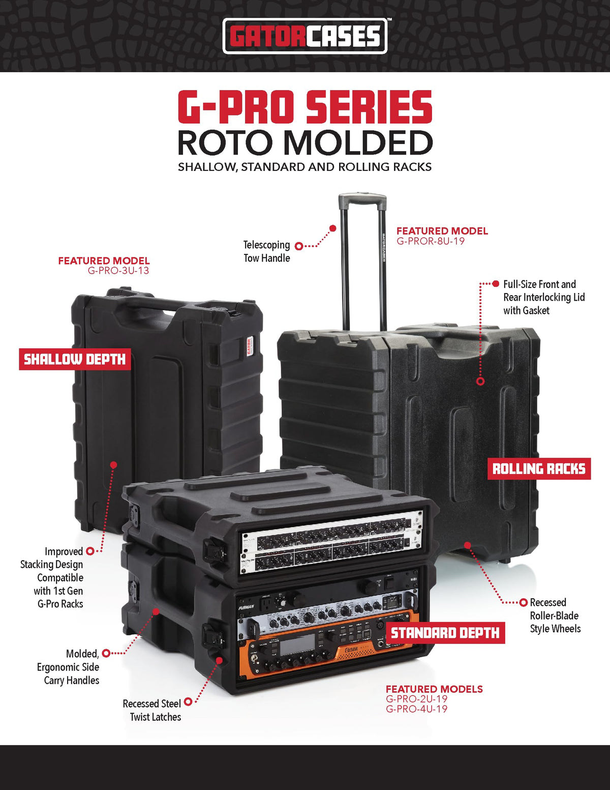 Gator Cases Pro Series 19'' Depth 8U Rolling Rack Case With Recessed Wheels, Black