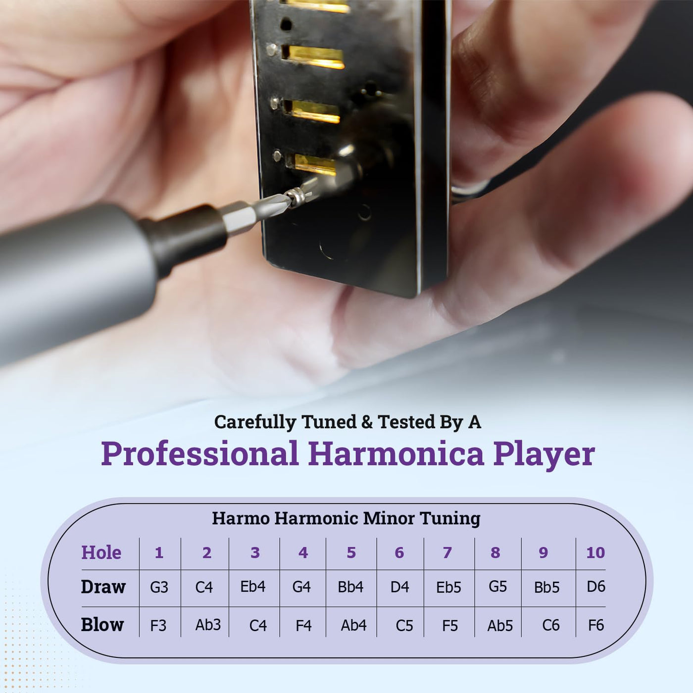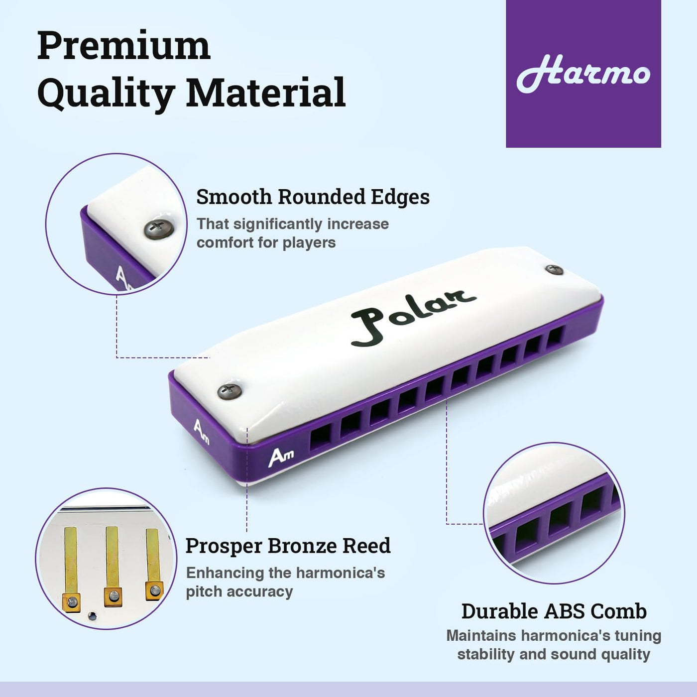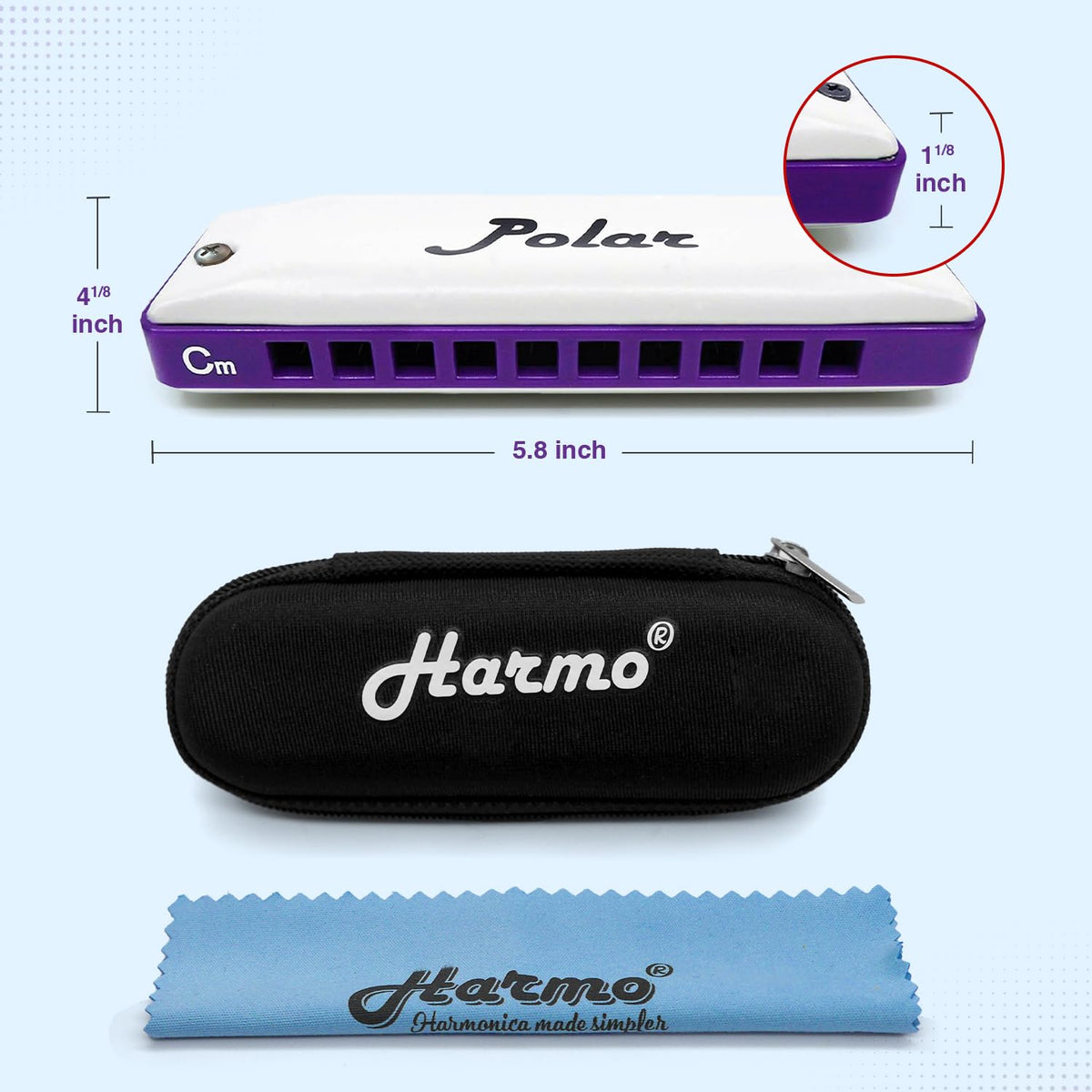 Harmonic Minor Tuned Harmonica : The Harmonic Minor Scale Is A Different Than The Natural Minor Scale C Major Scale : C D E F G A B C Natural Minor : C D Eb F G Ab Bb C Harmonic Minor : C D Eb F G Ab B The Sound Of The Harmonic Minor Has A Nice Flavour To It And Is Easy To Recognize As It'S Been Used In Countless Melodies In Classical, Jazz, Gypsy, Orienta, Lounge And Tango Music. This Harmonica Is Special Tuned (Not Standard Richter Tuned) To Make It Easier For Beginner And Intermediate Players To Play Harmonic Minor Songs Using The Harmonic Minor Scales And Its Modes. If You Know Basic Major Patterns On The Standard Tuned Harmonica You Can Easily Use A Harmonic Minor Tuned Harmonica And Reuse Most Of What You Already Know Without Having To Learn New Patterns And Complex Theory. In The Table Below We Can See A Clear Example Of How The Harmo Polar Harmonic Minor Tuned Diatonic Harmonica Helps You Get The Most Useful Minor Scales With 0 To 1 Bend When You Need A Minimum Of 4 On A Standard Tuned Model. C Harmonic Minor Scale On 2 Octaves G Mixolydien B2B6 (Played On G7) C Standard 3 Bend + 2 Overbend 3 Bends + 1 Overbends C Harmonic Minor Tuned 0 1 Bend Polar Diatonic Harmonica By Harmo Amazing, Versatile, Stylish. The Polar Harmonica Uses An In-House-Specific Process That Makes It Particularly Well Adjusted For Blues, Folk, Country, Rock, And Funk, Giving You Great Projection, Airtightness And A Good Starting Overblow-Friendly Setup. Full And Loud Tone With Fast Response. The Polar'S White Matte Covers Are A Unique Feature That Will Make You Stand Out In The Crowd. The Edges Are Very Smooth And Suitable For Any Harmonica Player. The Polar Diatonic Harmonica By Harmo Harmonic Minor Tuning Comes In All 12 Keys: C, C#, D, D#, E, F, F#, G, G#, A, Bb, And B. Package Includes : A Sturdy Zipper Case Keeps The Dust Out And Allows Moisture To Evaporate. A Wiping Cloth Is Included Basic Playing Instructions
