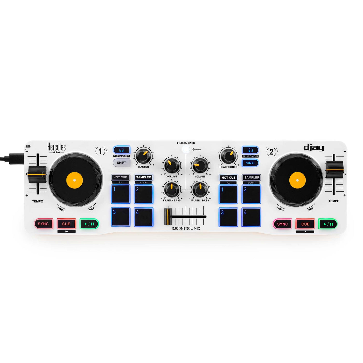 Hercules Djcontrol Mix Bluetooth Wireless Dj Controller For Smartphones (Ios And Android) Djay App 2 Decks, White