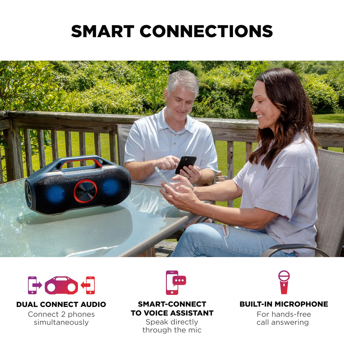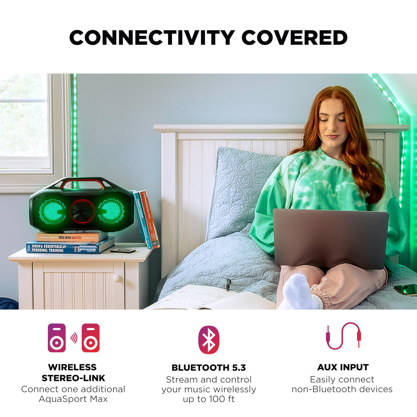 Ion Aquasport Max Waterproof 60W Portable Bluetooth Party Speaker With Lights, Battery, Built-In Microphone, Radio And Aux Input