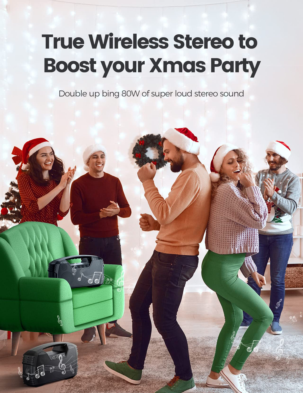 Portable Waterproof Bluetooth Speaker Meet Our First Portable Outdoor Speaker, Deep Bass, And An Ipx7 Waterproof Rating. Tws Pairing Allows You To Pair Two Speakers Of Our Brand Together Via Bluetooth To Double The Volume. Great For Home, Offices, Backyards, Patios, Pool Parties, Beach Parties, Tailgate Parties, Garage, Cookouts, And Hiking/Camping Trips. Key Features 1, 40W Huge Stereo Sound & Rich Bass 2, 32 Hours Of Playtime, Large Capacity Battery 3, Ipx7 Fully Waterproof, 5, Portable Carrying Handle 6, Usb-C Charging 7, Aux Input For Non-Bluetooth Devices 8, Built-In Mic, Available For Making Hands Free Calls 9, Tws Function