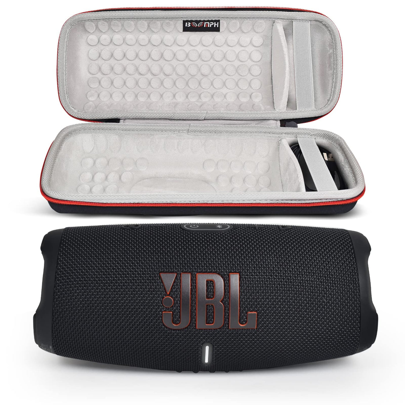 Q: What is included with the JBL Charge 5 speaker?A: The JBL Charge 5 bundle includes the speaker itself and a durable hardshell travel case, which features a mesh pocket for storing USB cables and accessories.