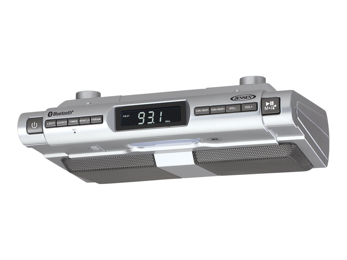 The Jensen Smps-628 Is A Bluetooth Music System With A Perfect Space Saving Under Cabinet Design. The Hands-Free Speakerphone With Built-In Microphone Is Great For Multitasking On Your Bluetooth-Enabled Phone. Enjoy Lots Of Convenient Features Like Fm Stereo Receiver, Digital Volume Control, Clock With Timer, A Built-In 4X Led Work Area Light, And An Auxiliary Input Jack For Connecting Your Ipod, Mp3, Or Other Digital Audio Players. This Unit Is Ideal For The Kitchen, But Can Be Mounted Anywhere Easily With Under Cabinet Mount Included. The Smps-628 Bluetooth Music System Is Multifunctional, Discrete, And Packs A Big Sound. It Will Have You Wondering How You Ever Listened To Music At Home Without It.