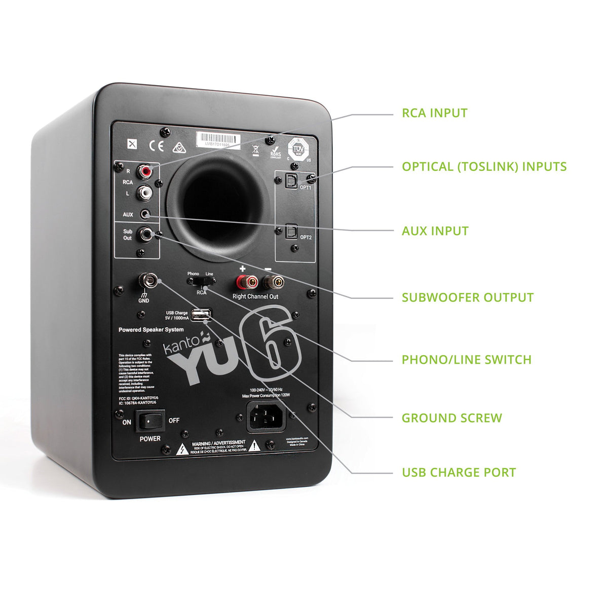 Undeniably Loud. Satisfy Your Craving For Powerful, Full-Impact Sound With Yu6. Armed With A Formidable Class D Amplifier Pumping Out 200W Peak Power, Yu6 Will Have You Questioning What It Really Means To Be Loud. Its 5.25'' Kevlar Drivers And 1'' Silk Dome Tweeters Inject Detailed Sound Into Every Square Inch Of Living Space, Evoking Emotions That Can Only Be Expressed With An Ear-To-Ear Grin. A Built-In Phono Preamp Makes It Easy To Spin Your Favorite Tunes, While Bluetooth Connectivity Lets You Keep The Party Going From The Palm Of Your Hand.