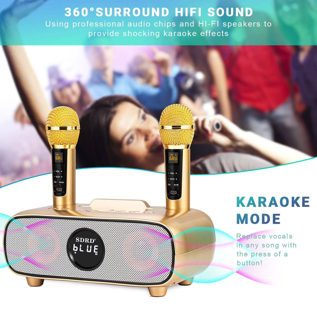 Karaoke Machine For Adults And Kids,Portable Bluetooth 2 Wireless Karaoke Microphone With Holder/Usb/Tf Card/Aux-In, Pa Speaker