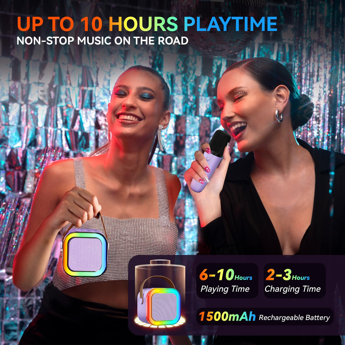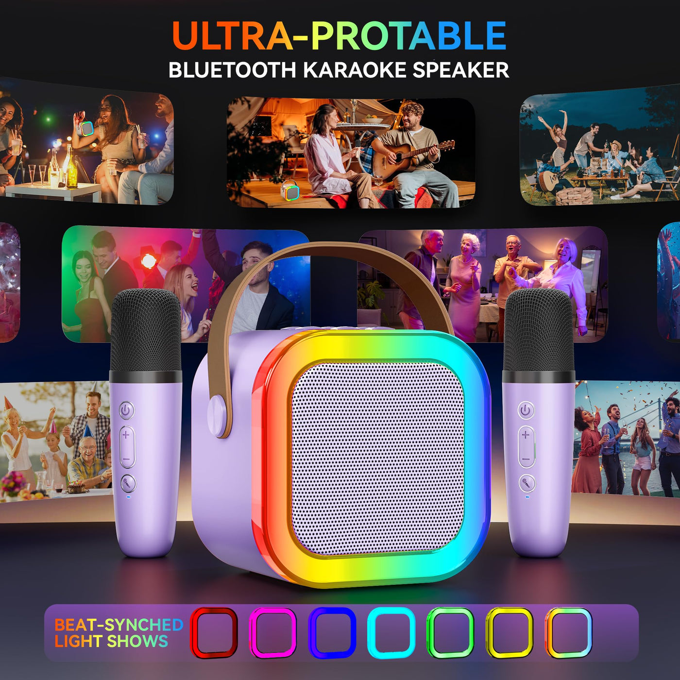 Karaoke Machine For Kids Adults, Portable Bluetooth Mini Karaoke Microphone Singing Speaker With 2 Wireless Mic And Light,Toys For All Smartphones,Birthday, Family,Home Party
