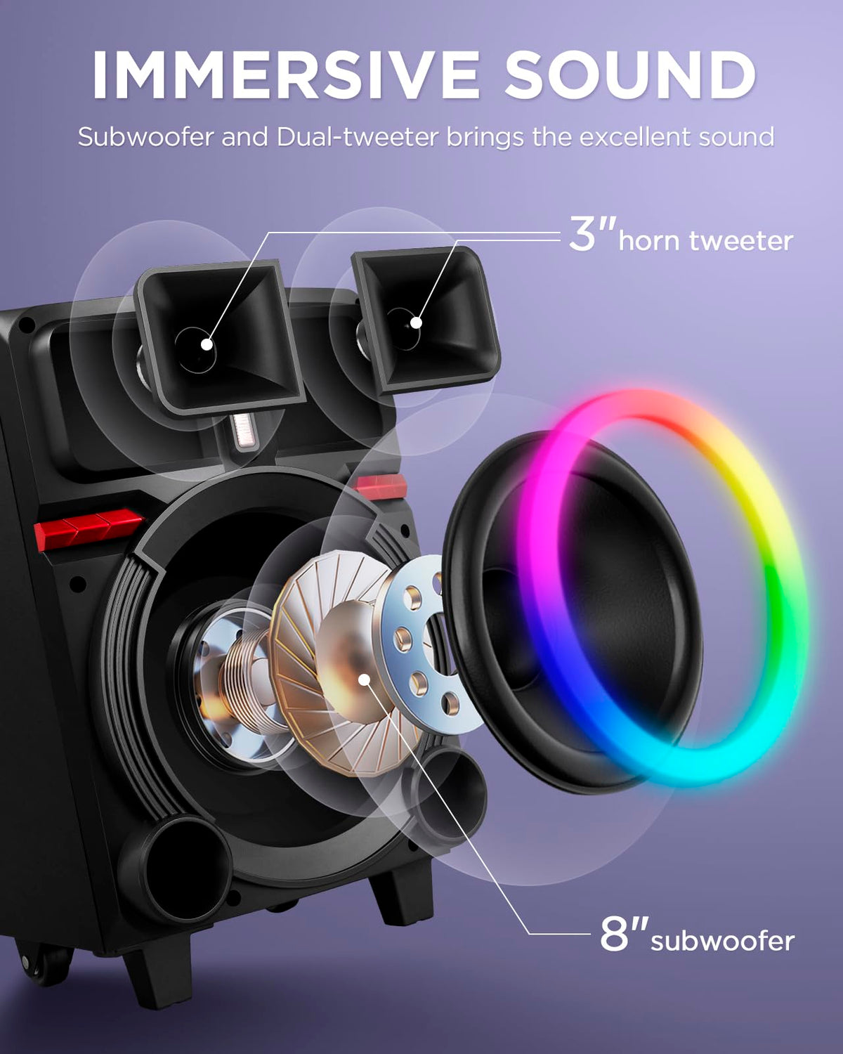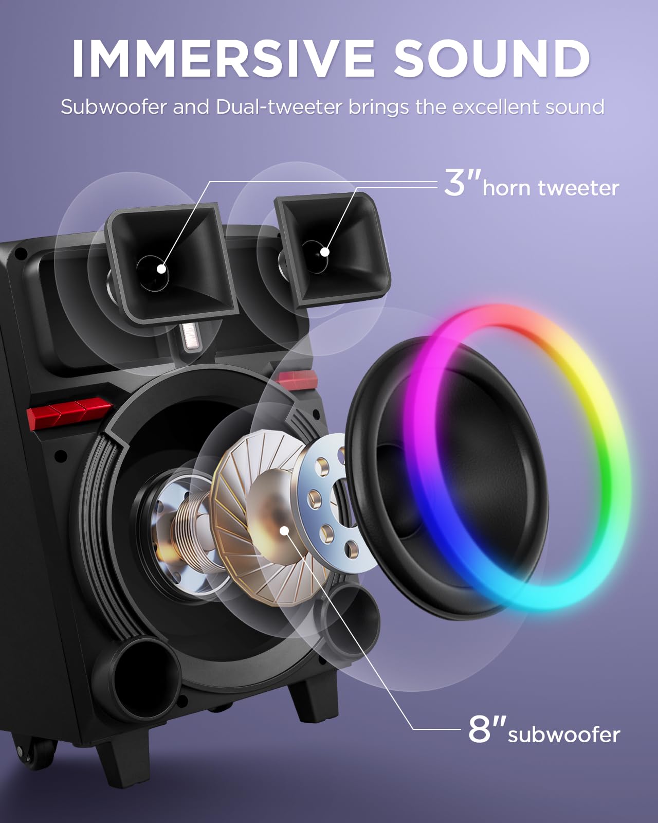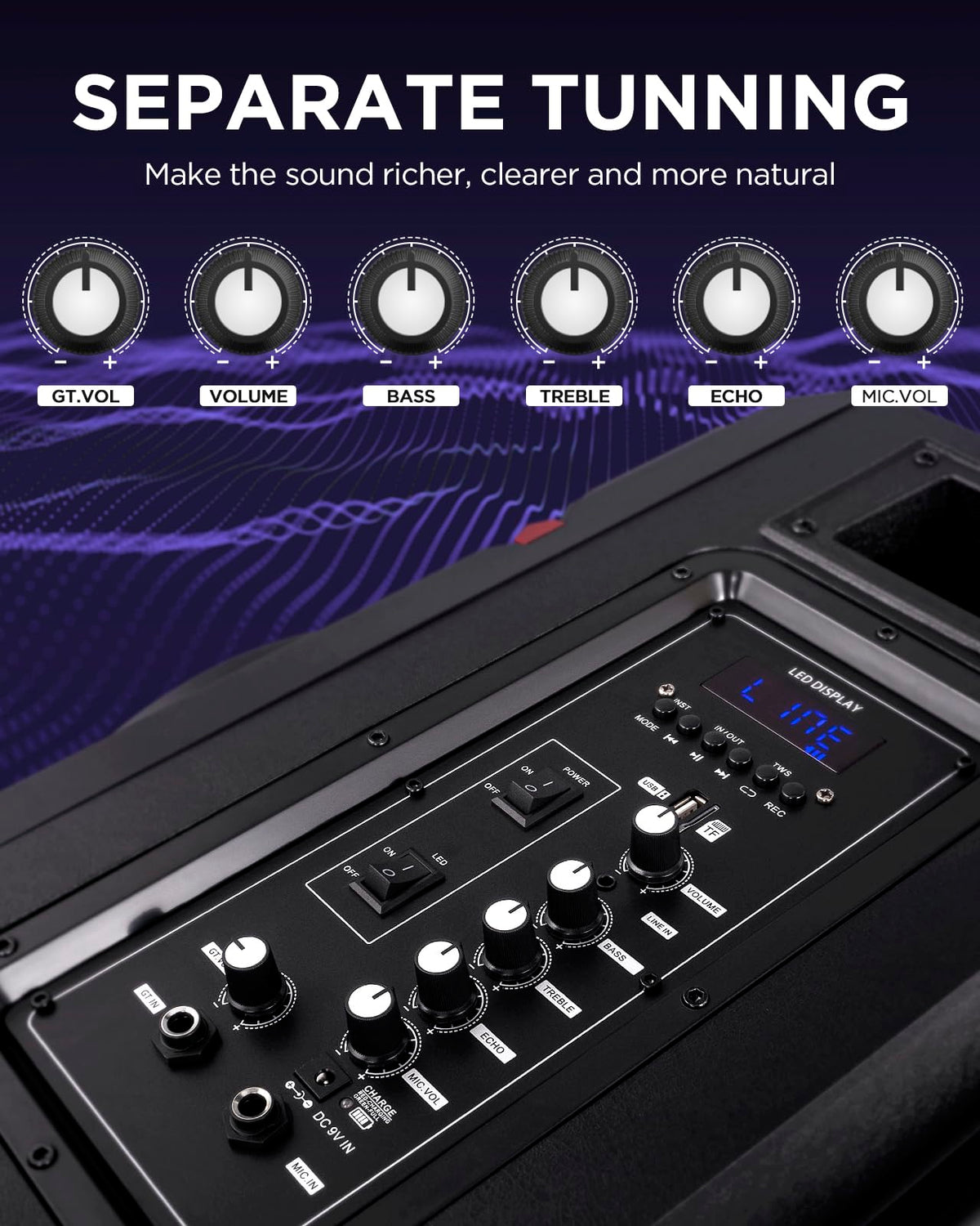 Karaoke Machine With 2 Wireless Microphones For Adults Kids, Portable Rechargable Pa System With Holder, Bluetooth Speaker With