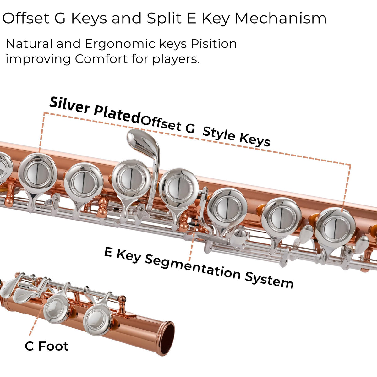 Kayata Flutes, Closed Hole C 16 Keys Flute Instrument, Student Flute For Beginner Advanced Player With Flute Cleaning Kit, Carry