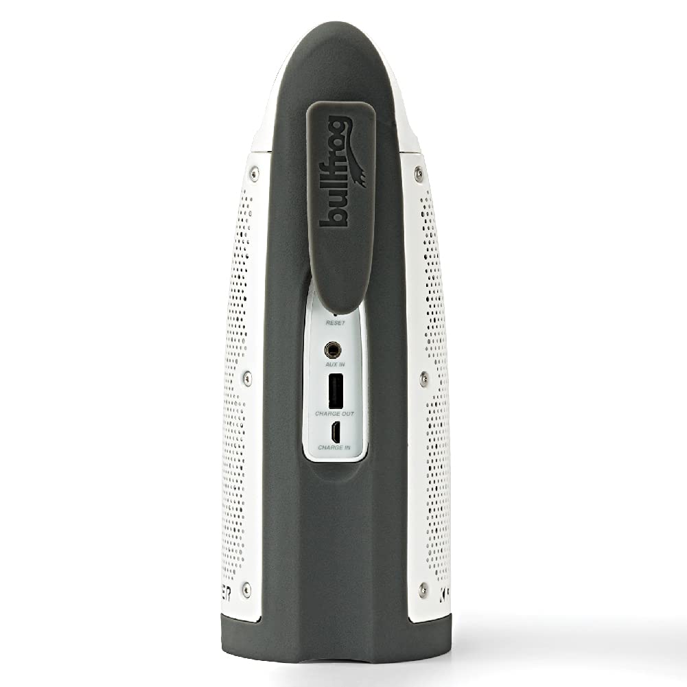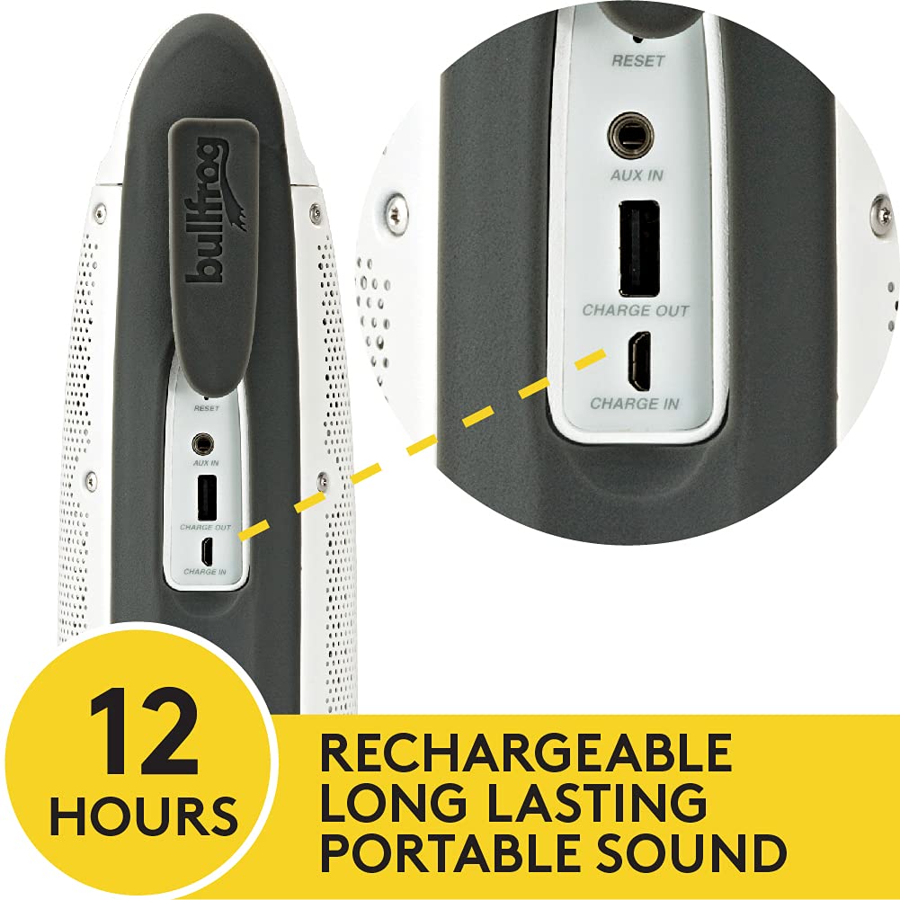 Long Range And Even Longer Life! The Bullfrog Lets You Stream Bluetooth Audio From As Far As 100-Feet Away, Or Connect Directly To The Charging Usb For Up To 20 Hours Of Playback On A Single Charge. Be Heard Everywhere! The Bullfrog'S Unique Design Gives You Speakers On Both Sides Of The Unit, Plus Plenty Of Volume To Keep The Fun Going. Doublekick Connect Joins Two Bullfrogs Together Wirelessly. That'S Twice The Kick For Twice The Fun! Bring On The Sand, The Waves And The Sun. The Bullfrog'S Ip66 Rating Means Total Reliability For Years To Come. Customize Your Bullfrog With Kicker Connect. Explore A Five-Band Equalizer, Fm Tuner With Presets, Volume Control, Battery Status And More, Right From Your Phone. Bullfrog Bluetooth Music System Two 4'' Drivers, Two 3''X4'' Passive Radiators Ip66 Rating For Water Resistance Bluetooth Wireless For Connection To Phones, Tables Or Notebooks (Up To 100 Feet Range) 20 Hours Of Playback On A Single Charge 2-Side Speakers Design With Top Handle Can Be Pair With Another Bullfrog Speaker For Stereo Sound Compatible With Kicker Connect App Built-In Fm Tuner Auxiliary Audio Input Jack Usb Port For Easy Charging