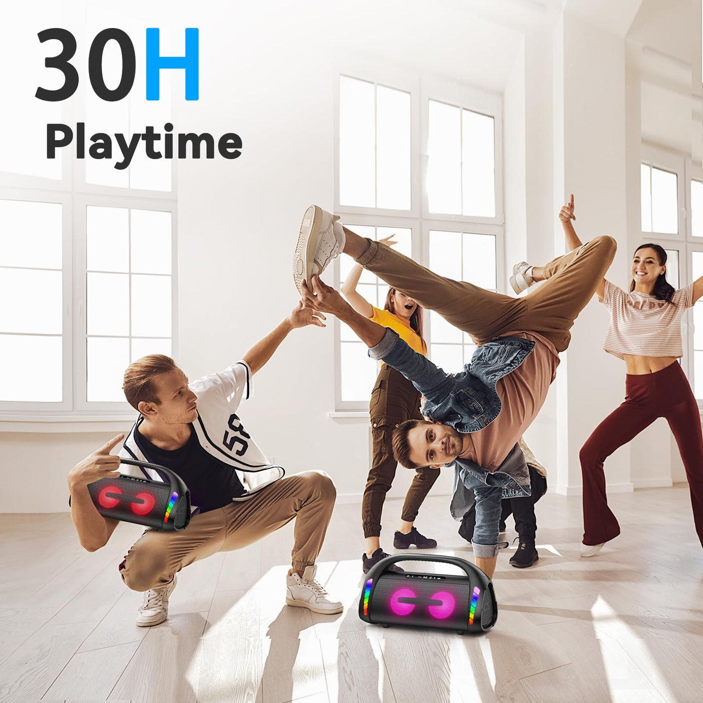 Lfs Bluetooth Speaker,100W Rms Loud Speakers Bluetooth Wireless With Deep Bass, Led Lights, Ipx6 Waterproof, 30H Playtime, Porta