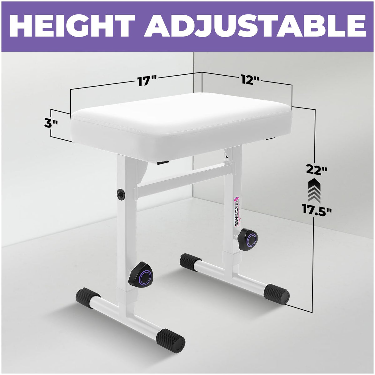 Liquid Stands Adjustable Piano Bench White - Music Keyboard Bench Seat For Digital & Electric Pianos - Stylish Seating, Comforta