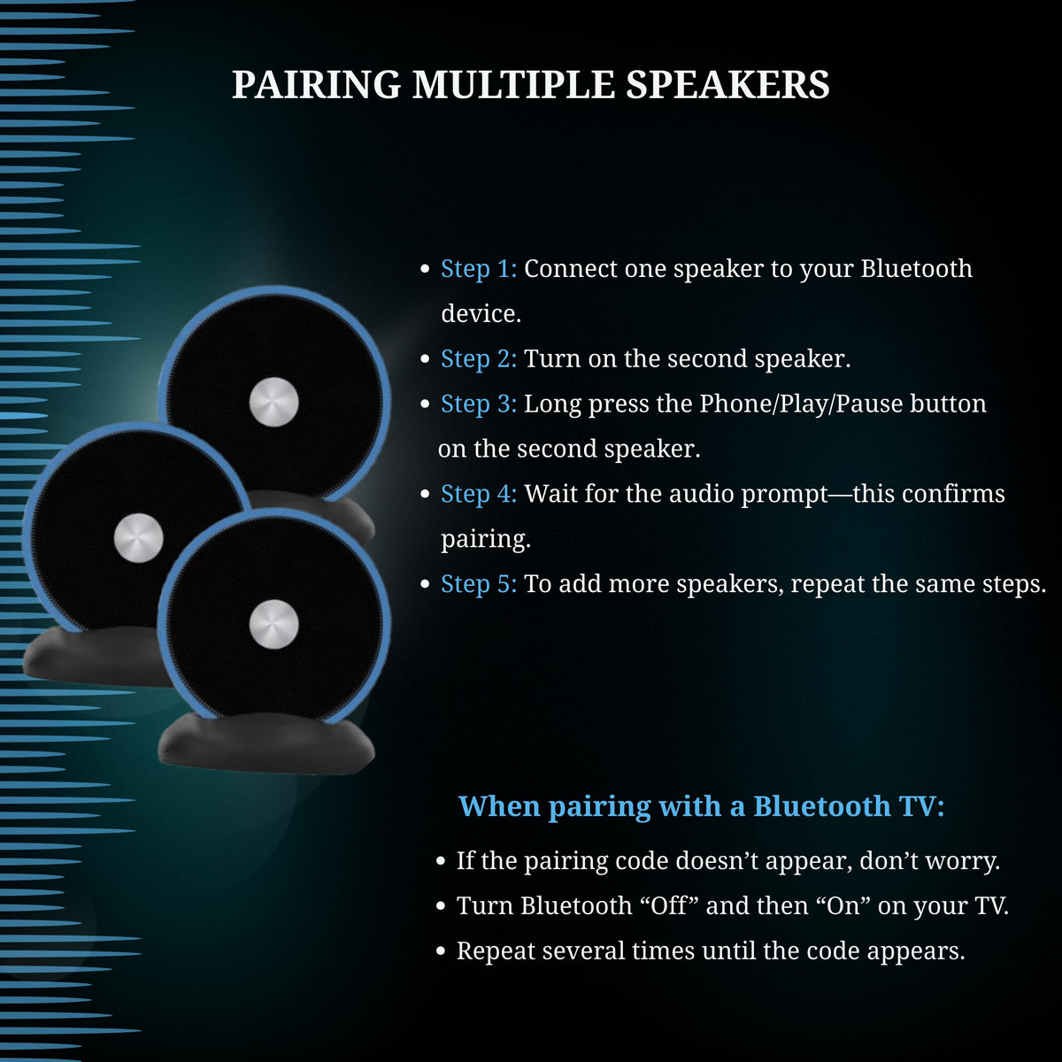 Long Run Technologies Paired Bluetooth Speakers - Surround Sound Stereo Pairing Linkable For Home Tv Car