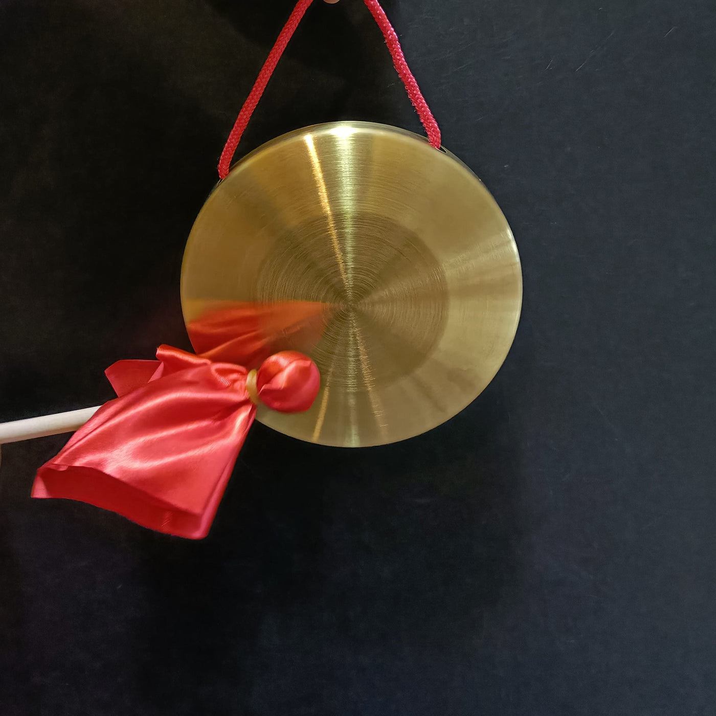 Loonelo Brass Instruments 5.9 Inch Gong Handcrafted Mini Gong With Wooden Mallet And Red Hanging Cord, Safe And Fun Musical In