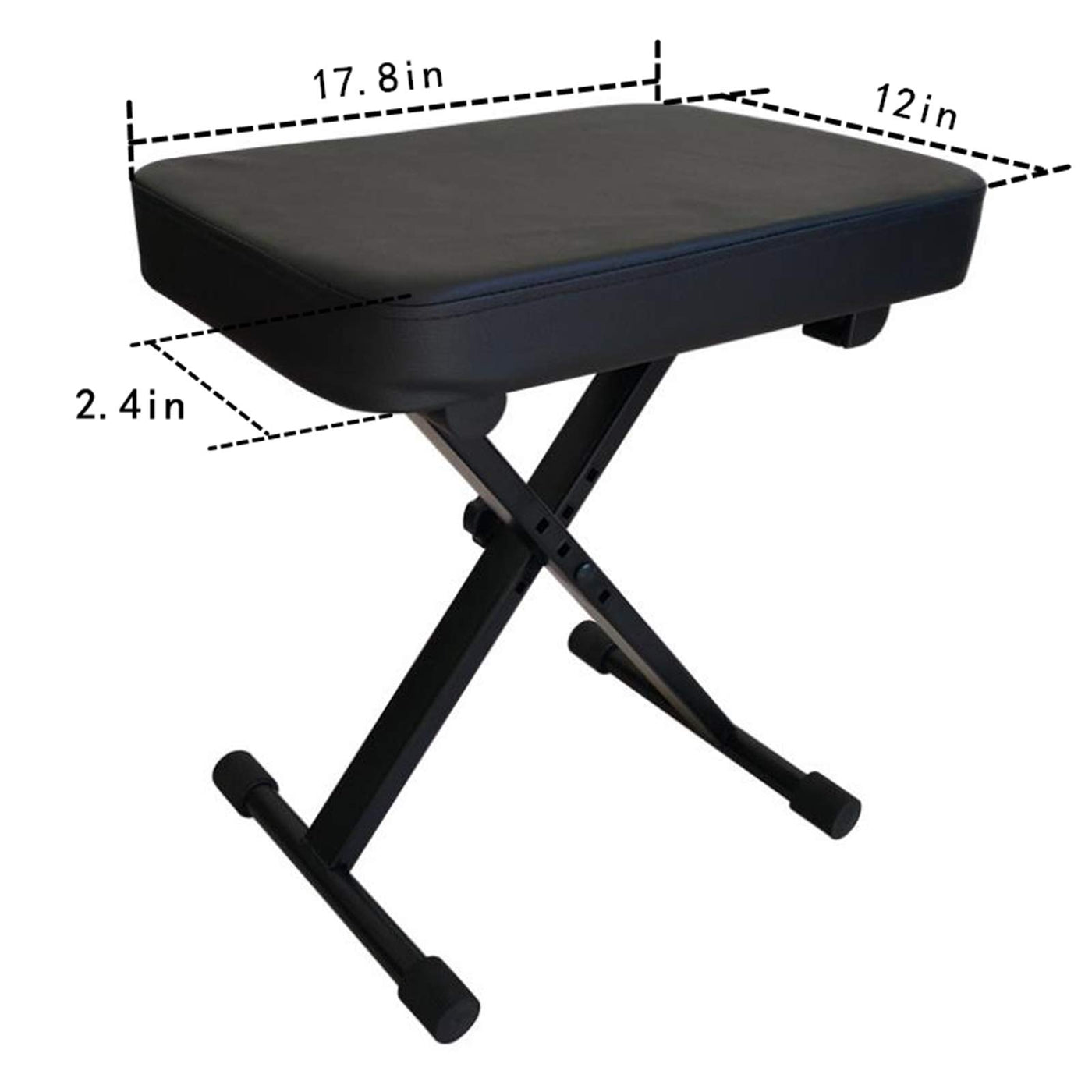 Product Description Miwayer High-End Keyboard Stool, 4-Level Adjustable Height, X-Shaped Fixed Bracket, Comfortable, Soft, And Breathable, Allowing You To Enjoy Comfortable Playing For A Long Timemiwayer Piano Stool Is Made Of High-Quality Materials, Made Of Thick Steel Pipe, Solid Wooden Seat Support, High Elastic Sponge To Improve Comfort, Leather Leather Wrap For Comfort And Breathability 178A X 12A Rectangular Bench Top With 25 Inch Padded Seat With Piping On Top Edge,4-Level Adjustable Height, Seat Height Can Be Adjusted From 145 To 208 Inches With A Definitive Black Finish And A Soft Padded Seat, This Bench Is Fully Adjustable For Individual Comfort And Folds Up For Your Traveling Convenience Height Is Adjustable From 145 To 208 Inches Specification: Miwayer High-End Keyboard Stool*1 Colour: Black