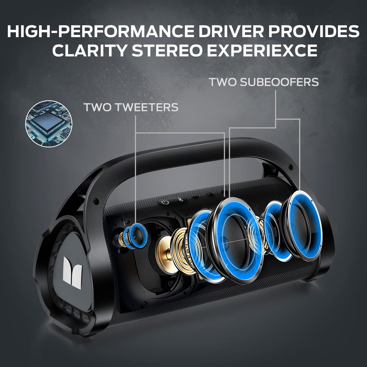 Monster Adventurer Max Boombox Bluetooth Speaker, Ipx7 Waterproof Outdoor Bluetooth Speakers With Double Subwoofer, 100W Stereo