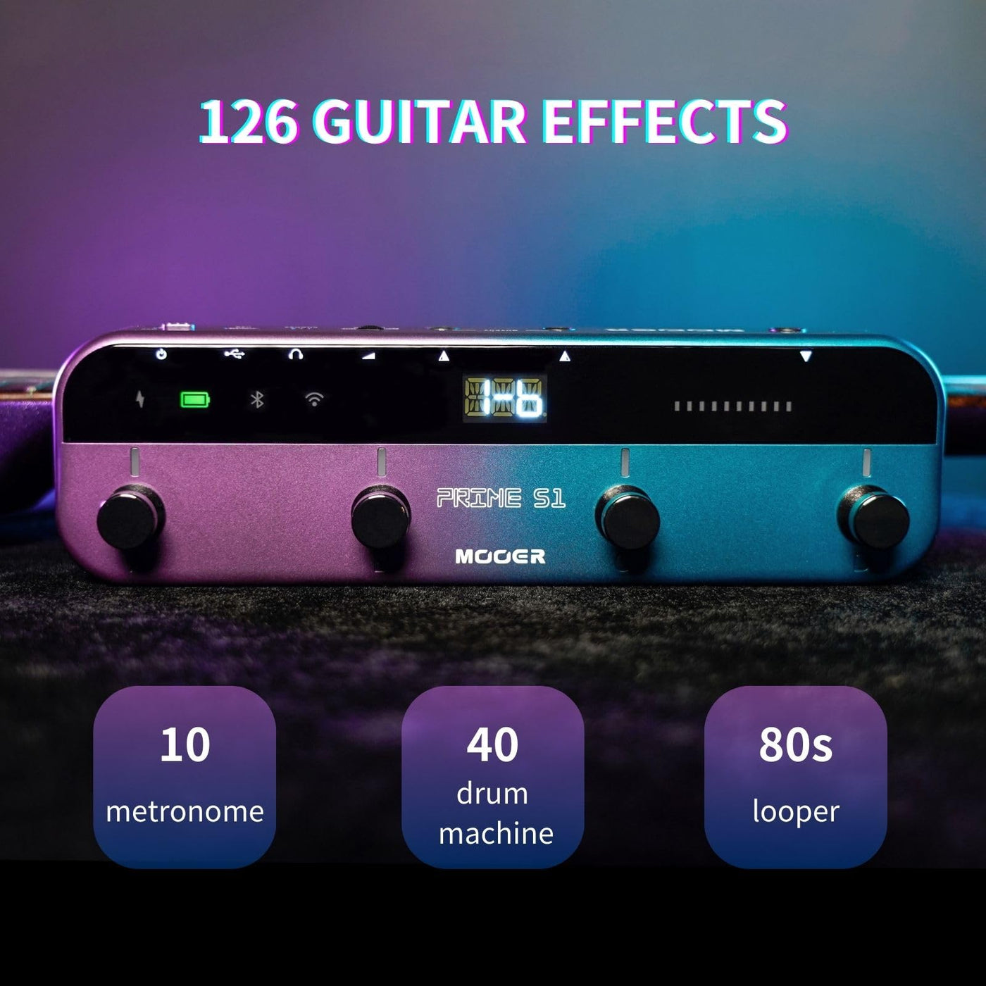 Mooer S1 Multi Effects Processor, Stereo Electric Guitar Pedals With Wireless Footswitch Controller 2 In 1 126 Guitar Effects Tuner 10 Metronome 40 Drum Machine 80S Looper Otg Usb Recording