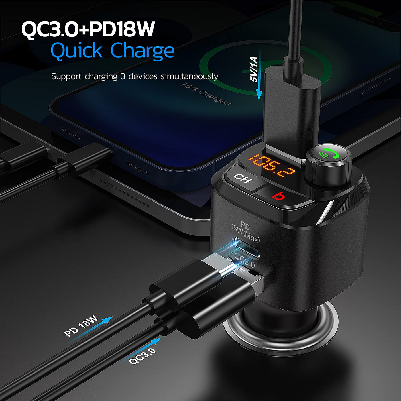 Q: How does the fast charging feature work on the NX12 model?A: The NX12 Bluetooth car adapter features two quick charging ports: PD18W and QC3.0, which deliver up to 4X faster charging speeds compared to standard USB ports. This allows you to charge multiple devices simultaneously without worrying about slow charging.