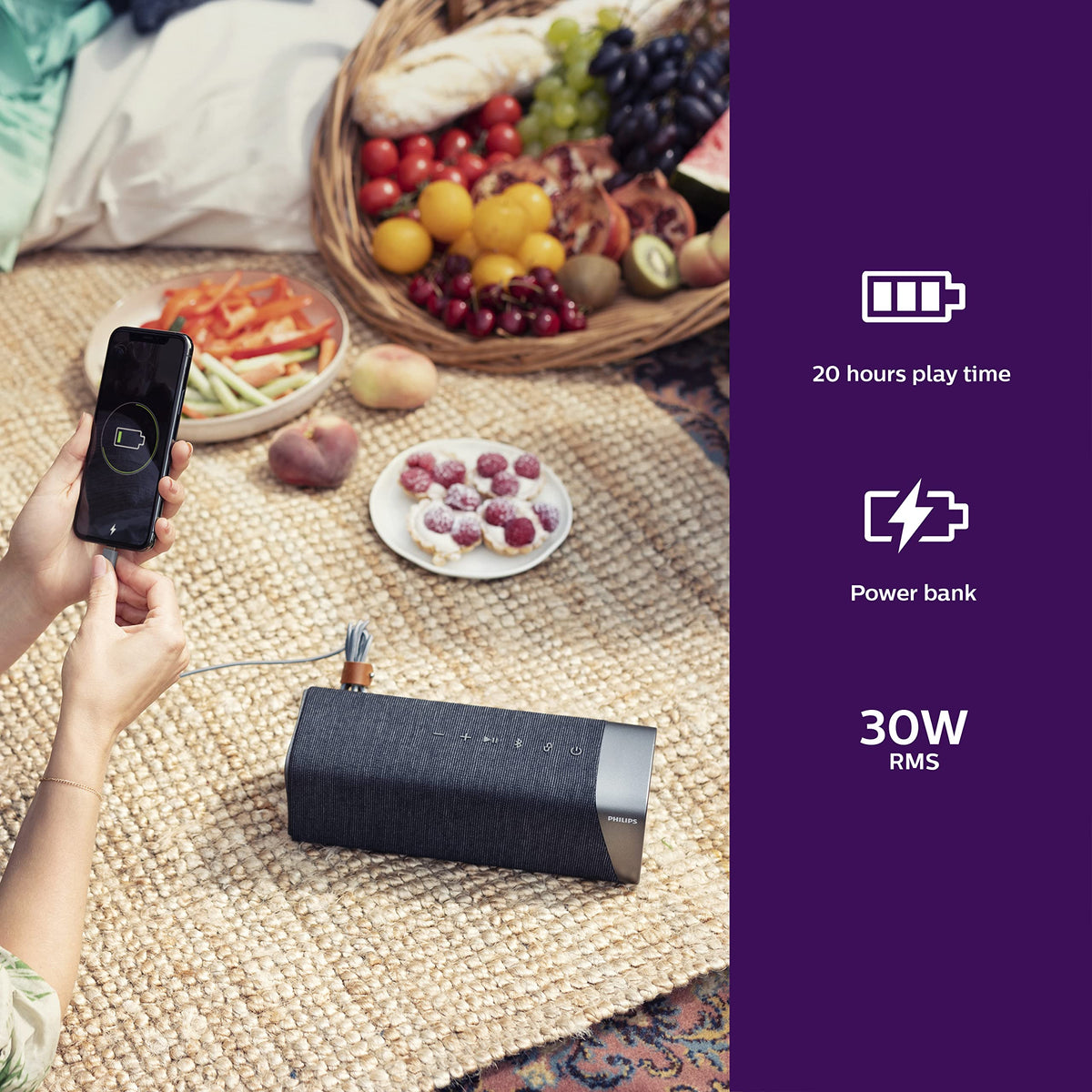 Philips S7505 Wireless Bluetooth Speaker With Built In Power Bank, Large Bold Sound, Up To 20 Hours Playtime, Ipx7 Waterproof, S