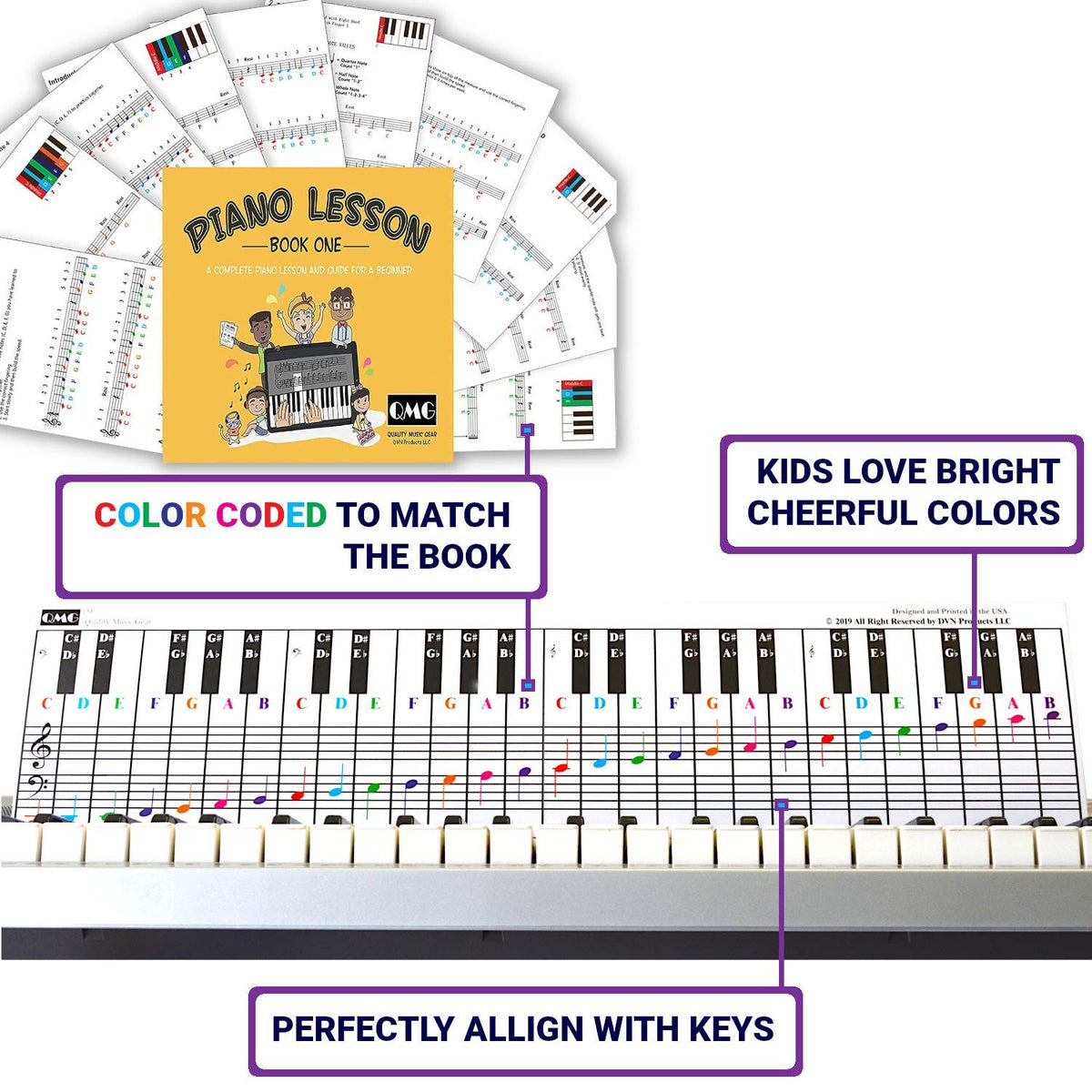 Piano And Keyboard Note Chart And Complete Color Note Piano Music Lesson And Guide Book For Kids And Beginners; Designed And Pri