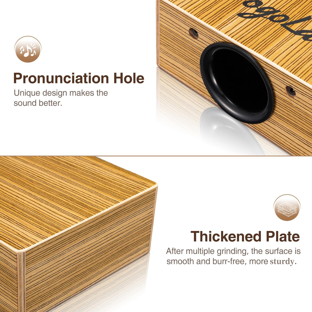 Pogolab Travel Cajon Drum, Portable Adjustable Tone Thick Wooden Cajon With Adjustable Strap & Storage Bag, Musical Hand Drum Wi